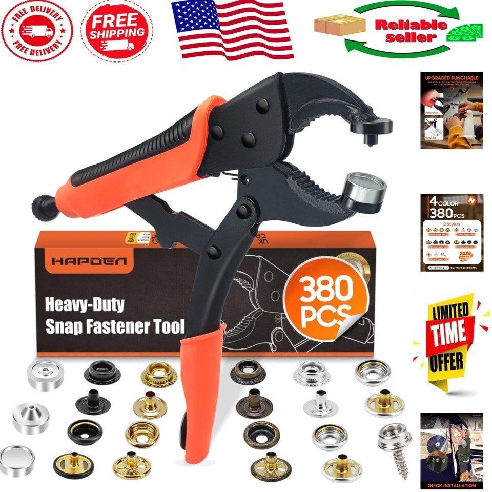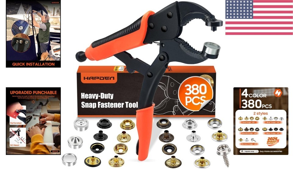 Whether you're repairing boat covers or enhancing your favorite leather garment, say goodbye to traditional, cumbersome methods! Our Effortless Snap Installation Tool offers a unique, patented design that simplifies your projects. With its comprehensive features, including a punching die, 100 extra snaps in stunning colors, and a robust construction, it elevates your repair game to new heights.