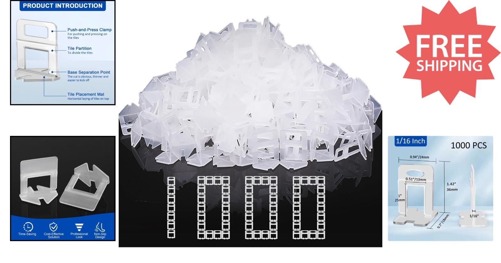 - Effortless Tile Installation with 1000-Piece Leveling Clips - 1/16" Grout Joint