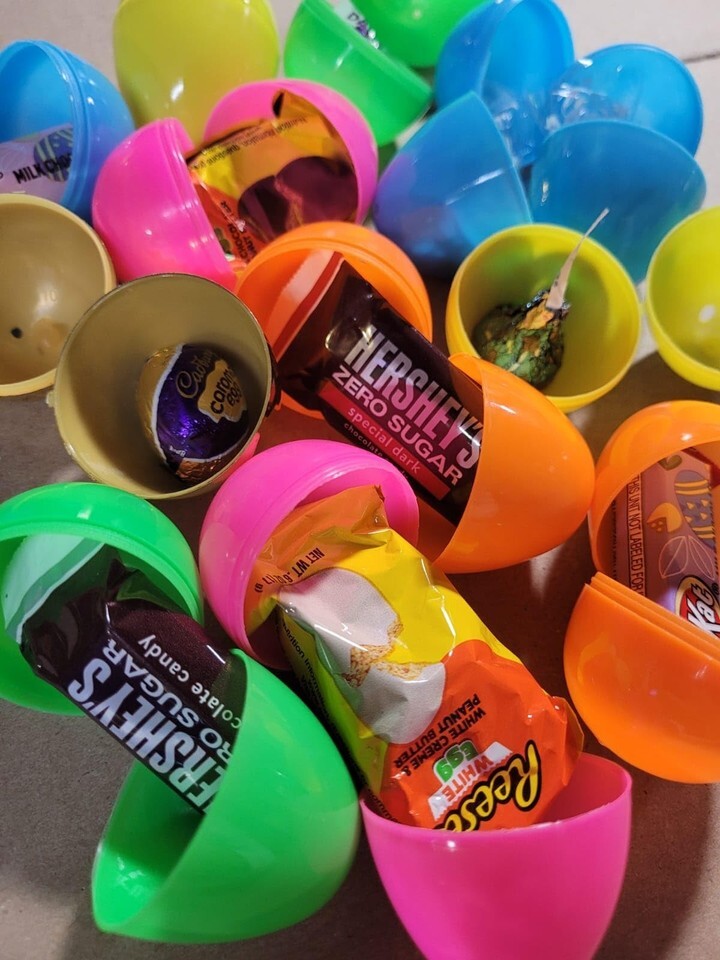 - Egg Hunt Filled Plastic Easter Eggs with Chocolate Candy, 12 Count Pack