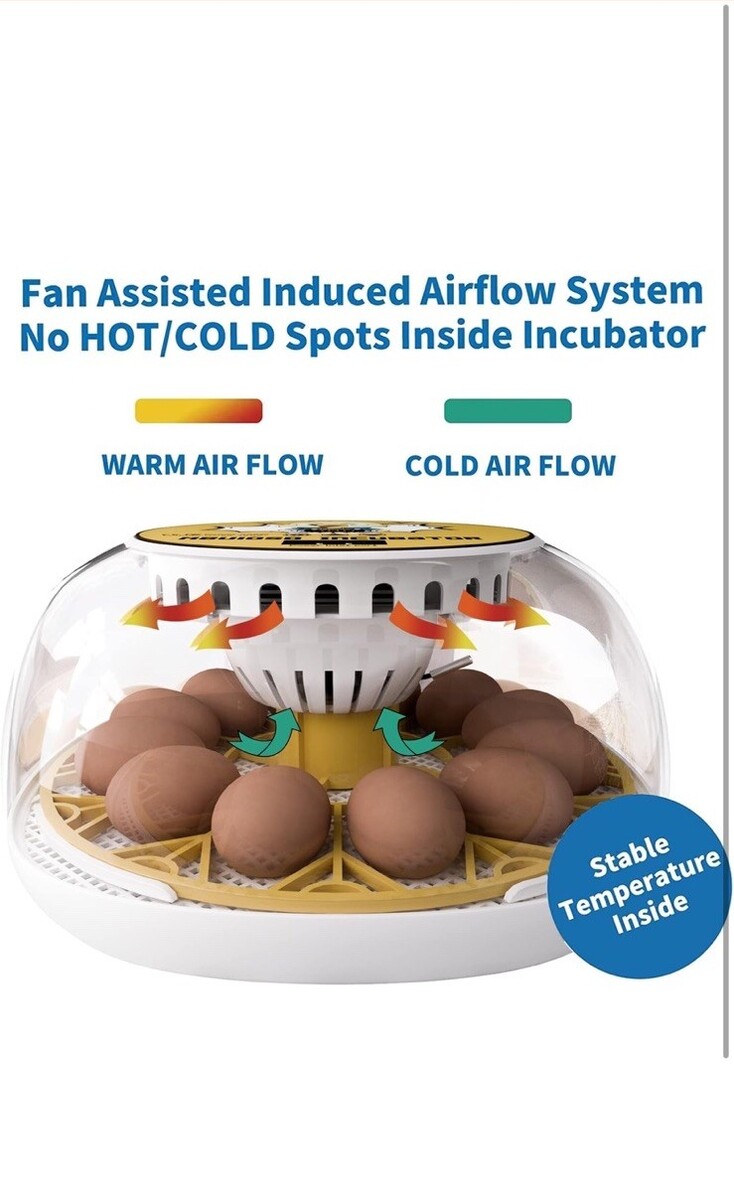 - Egg Incubator with Automatic Egg Turning and Humidity Control - 12/24 Eggs, 360°