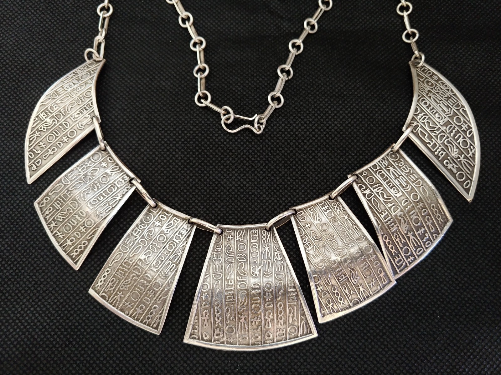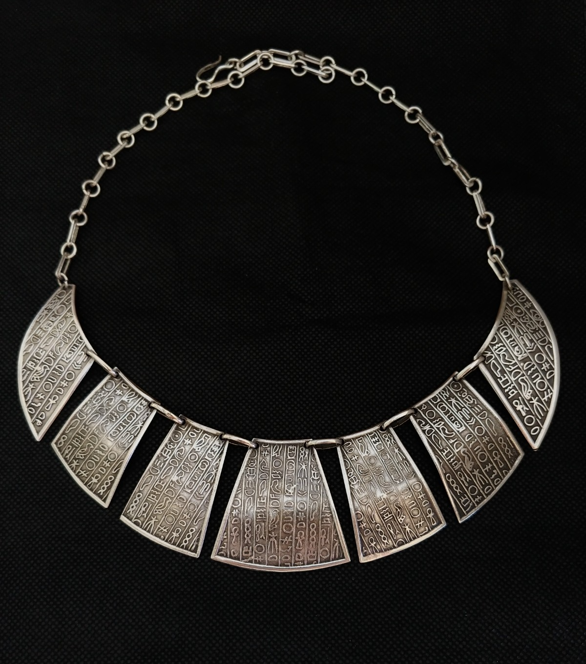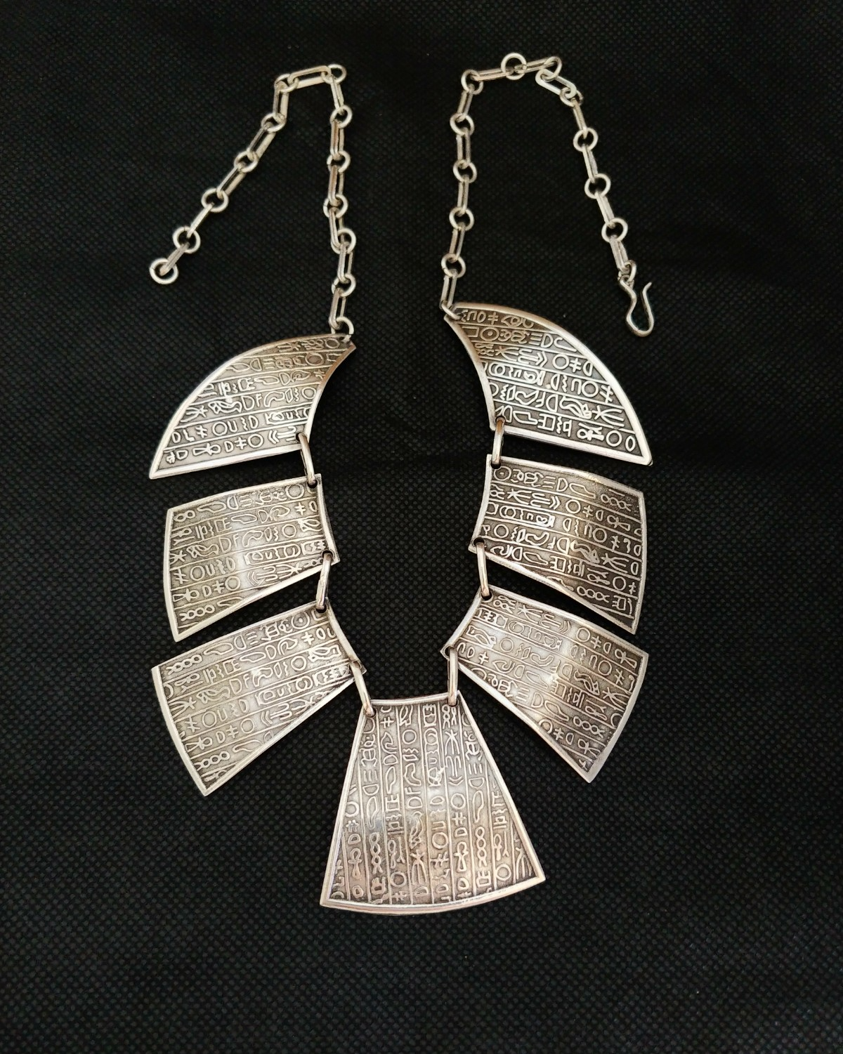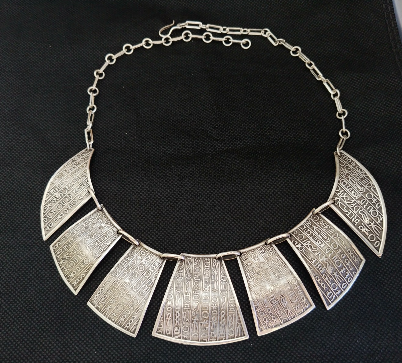 - Egyptian Necklace Silver Hieroglyphics Engraved Tribal Vintage Handmade Ethnic