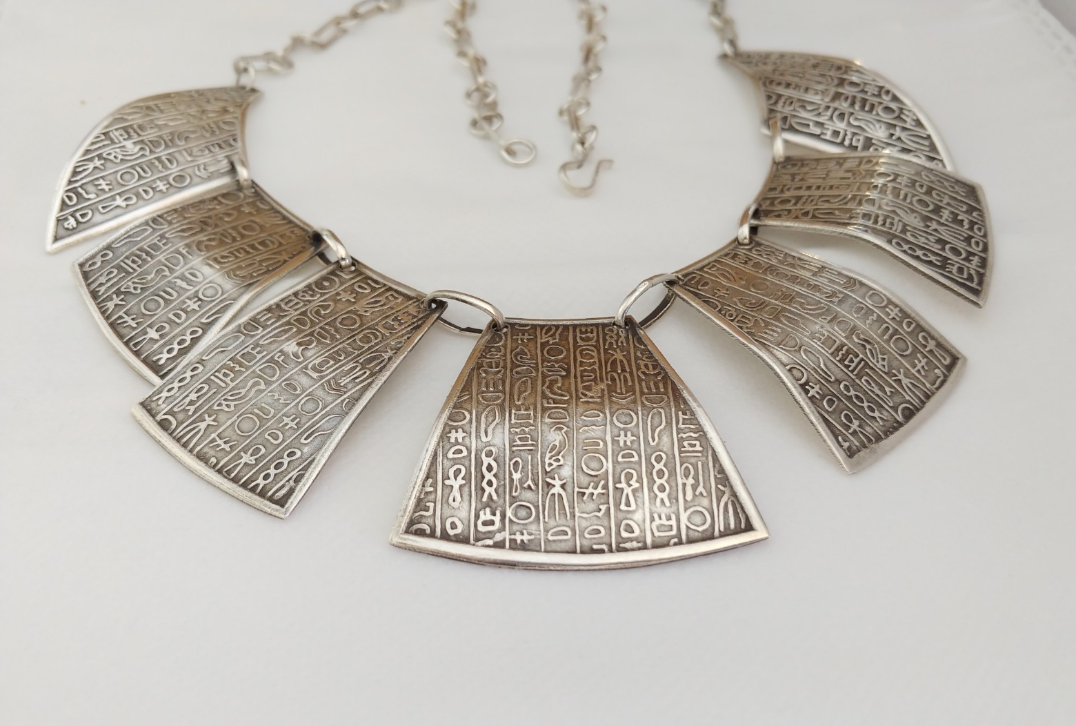 Egypt Necklace Silver engraved hieroglyphs