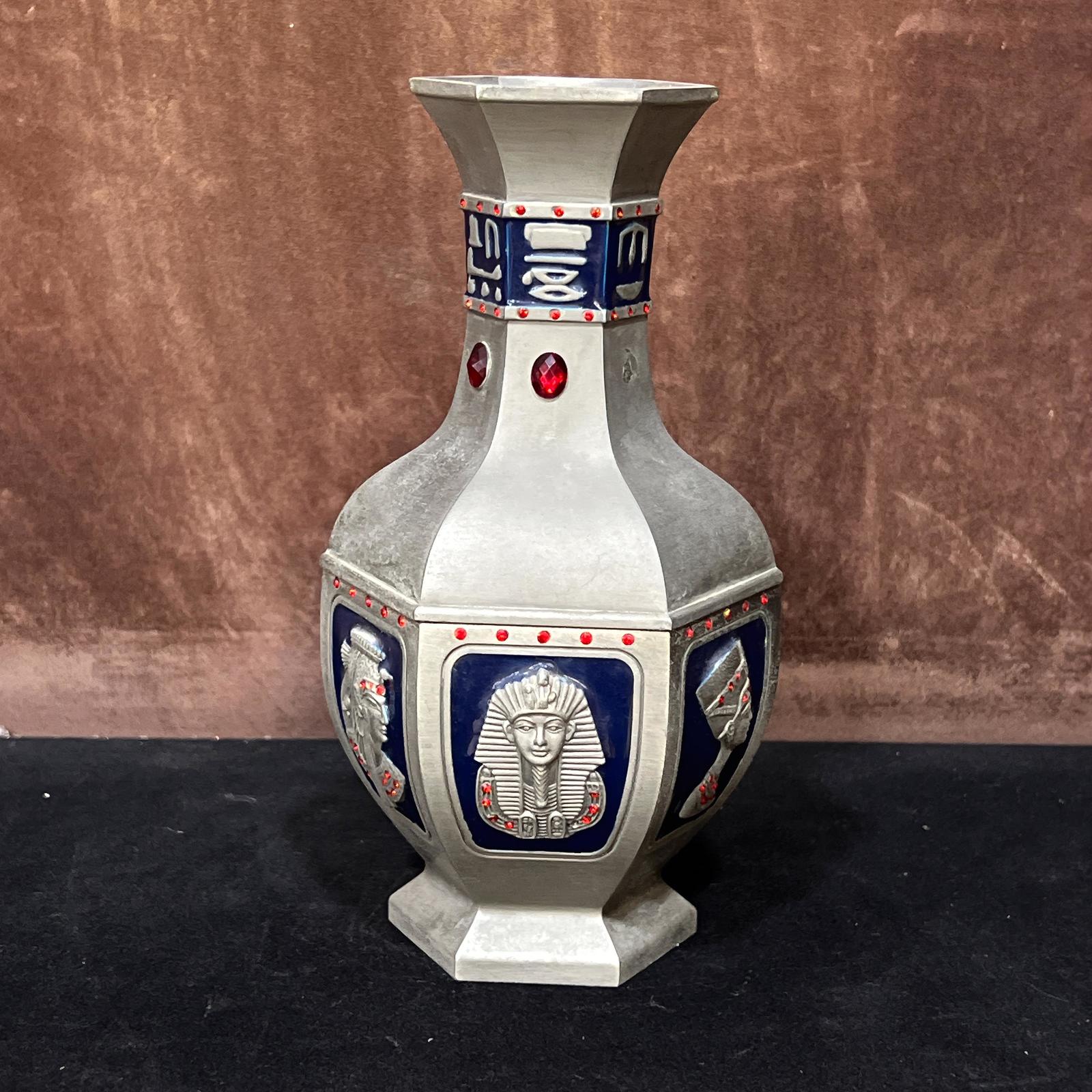 Egyptian handmade bronze Vase, Ancient Egyptian Incense with King Tut, Queen Nef