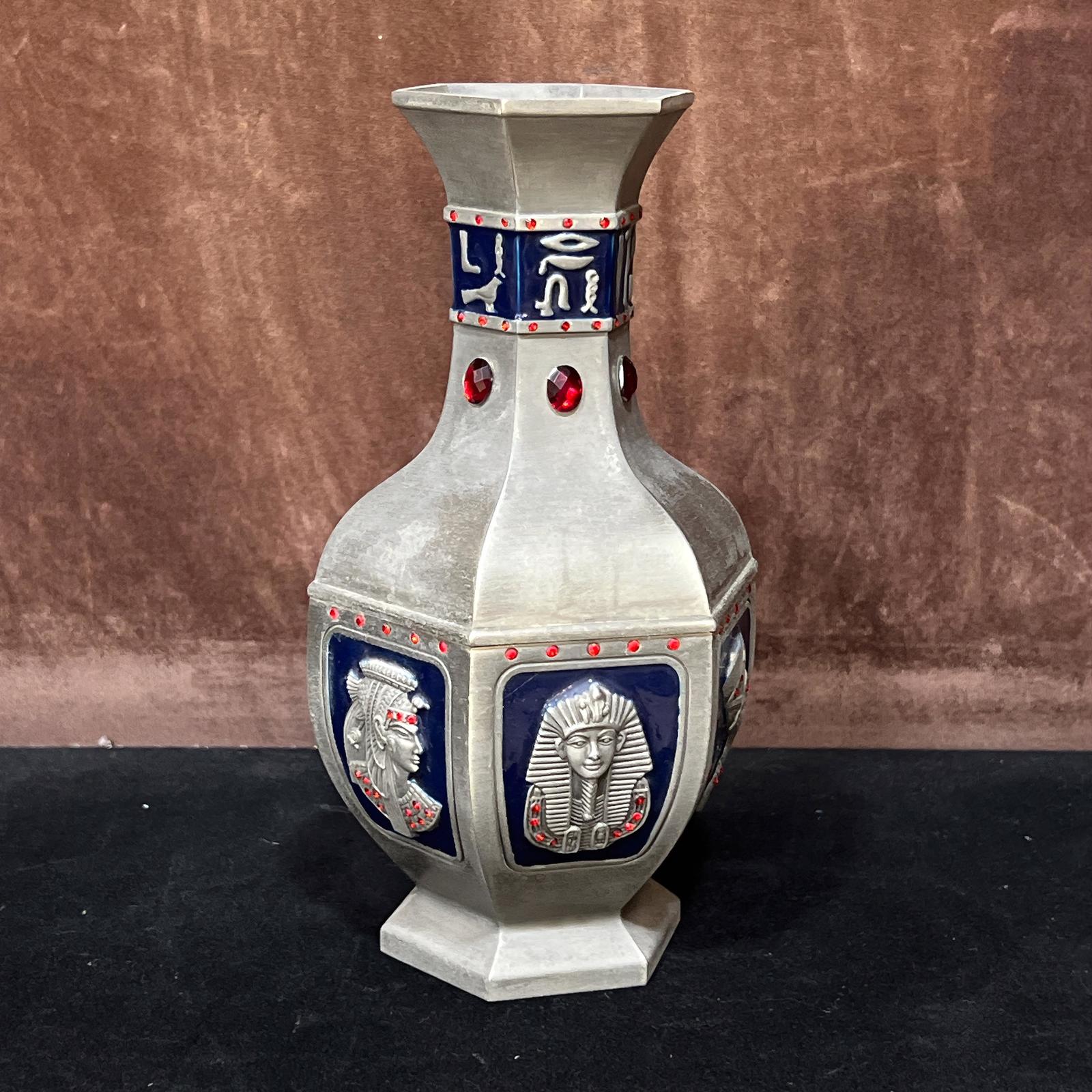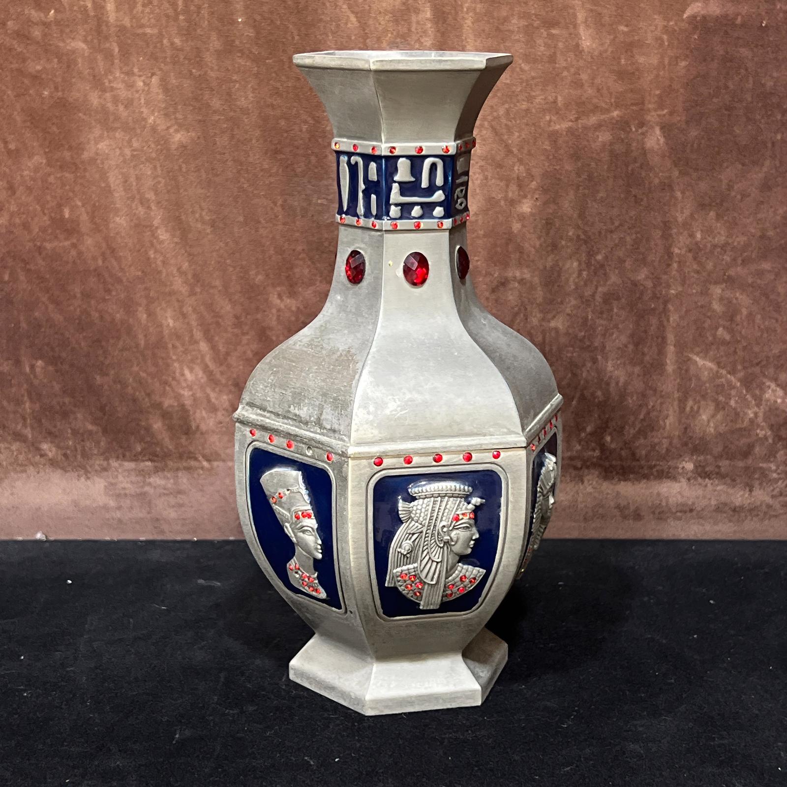 - Egyptian handmade bronze Vase, Ancient Egyptian Incense with King Tut, Queen Nef