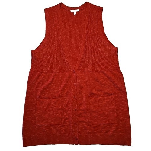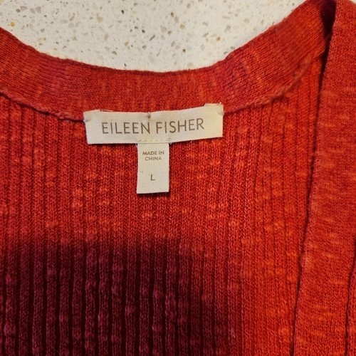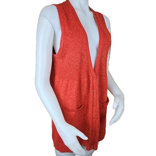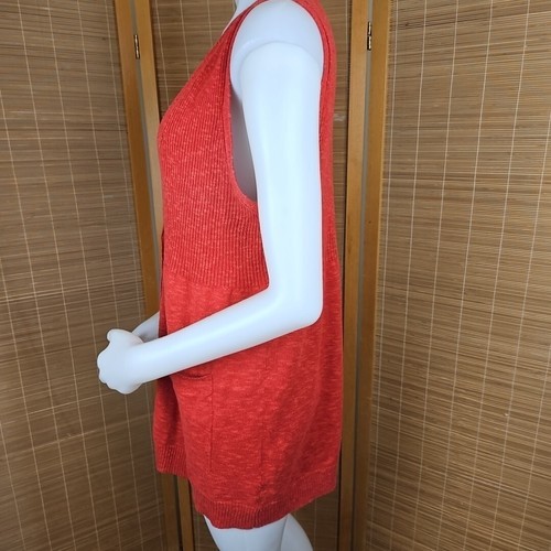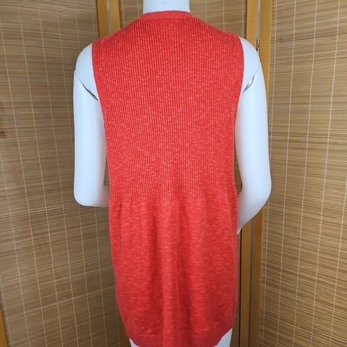 - Eileen Fisher Linen Blend Vest Womens L Orange Long Line Button Cardigan Sweater
