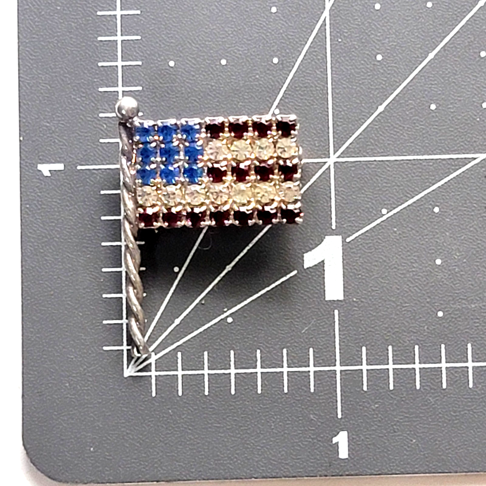 - Eisenberg ICE Rhinestone Flag Pin USA Patriotic Red White Blue Brooch Vintage