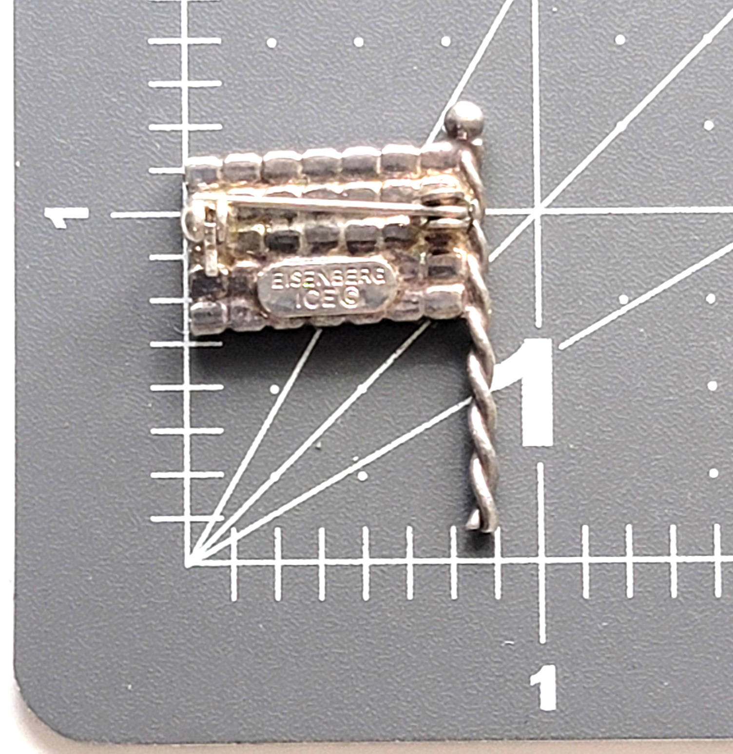 Eisenberg ICE Rhinestone American Flag Silver Tone Pin