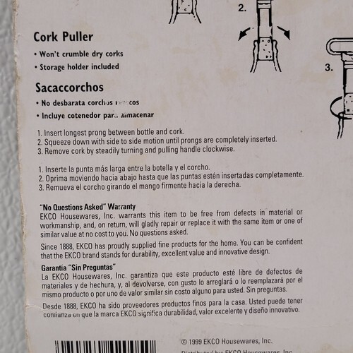 - Ekco Wing Cork Puller Barware Vintage 1999