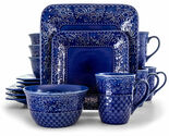 - Elama Indigo Lotus 16 Piece Square Dinnerware Set