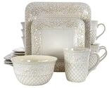- Elama Ivory Lotus 16 Piece Square Dinnerware Set