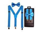 - Elastic & Adjustable Suspender & Bow Tie Set for Boys Girls Children -Light Blue