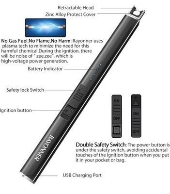 The Rayonner Electric Candle Lighter is a sleek and practical tool for lighting candles with the touch of a button. This USB rechargeable lighter features a safety switch to prevent accidental ignitions, making it a safe and convenient option for use in any home. Its modern design in black color makes it a stylish gift for any occasion, perfect for those who enjoy collecting unique and functional items.