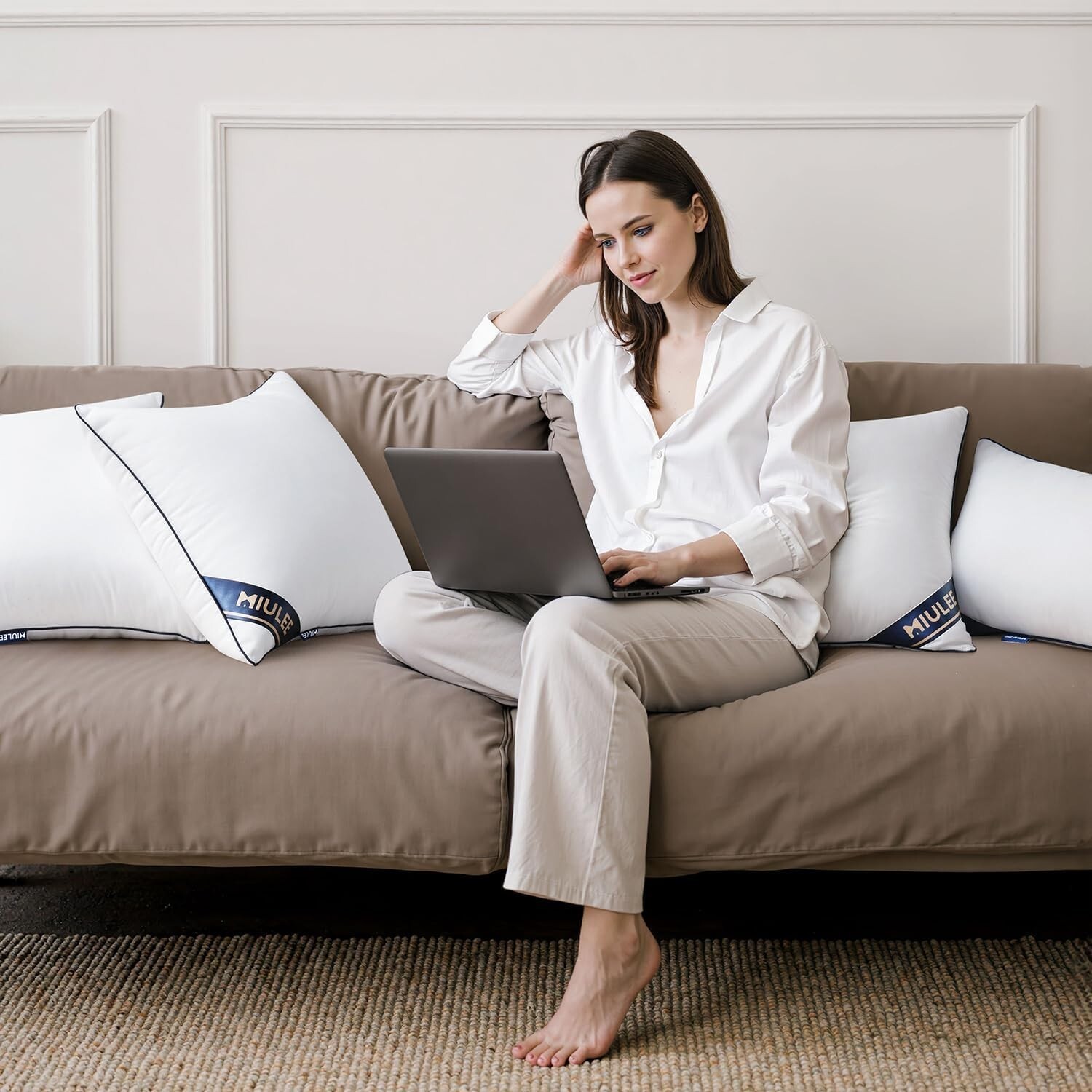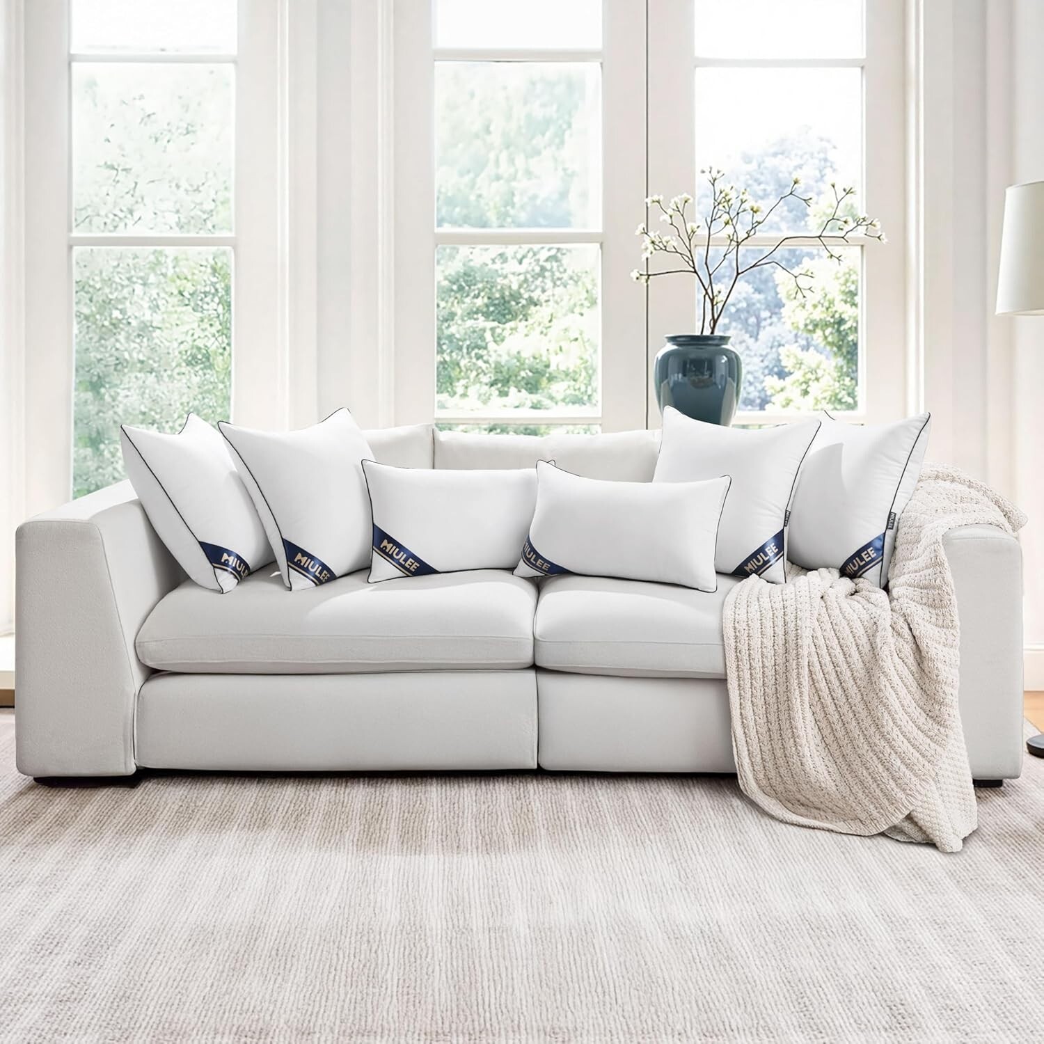 Experience cozy comfort with MIULEE Pillow Inserts, designed to elevate your home decor. Each pack includes two 18 x 18-inch inserts crafted from 3D virgin filling and 1.2D down alternative, offering plush support and quick rebound. Featuring a sophisticated navy blue piping and an adjustable zipper, these inserts combine elegance with customization. Ideal for sofas, beds, chairs, or offices, they seamlessly blend style and functionality. To restore fluffiness, simply dry in a dryer with dryer balls on warm mode for 20-30 minutes and pat to enhance volume. Transform your space with versatile, high-quality pillow inserts that promise comfort and elegance.