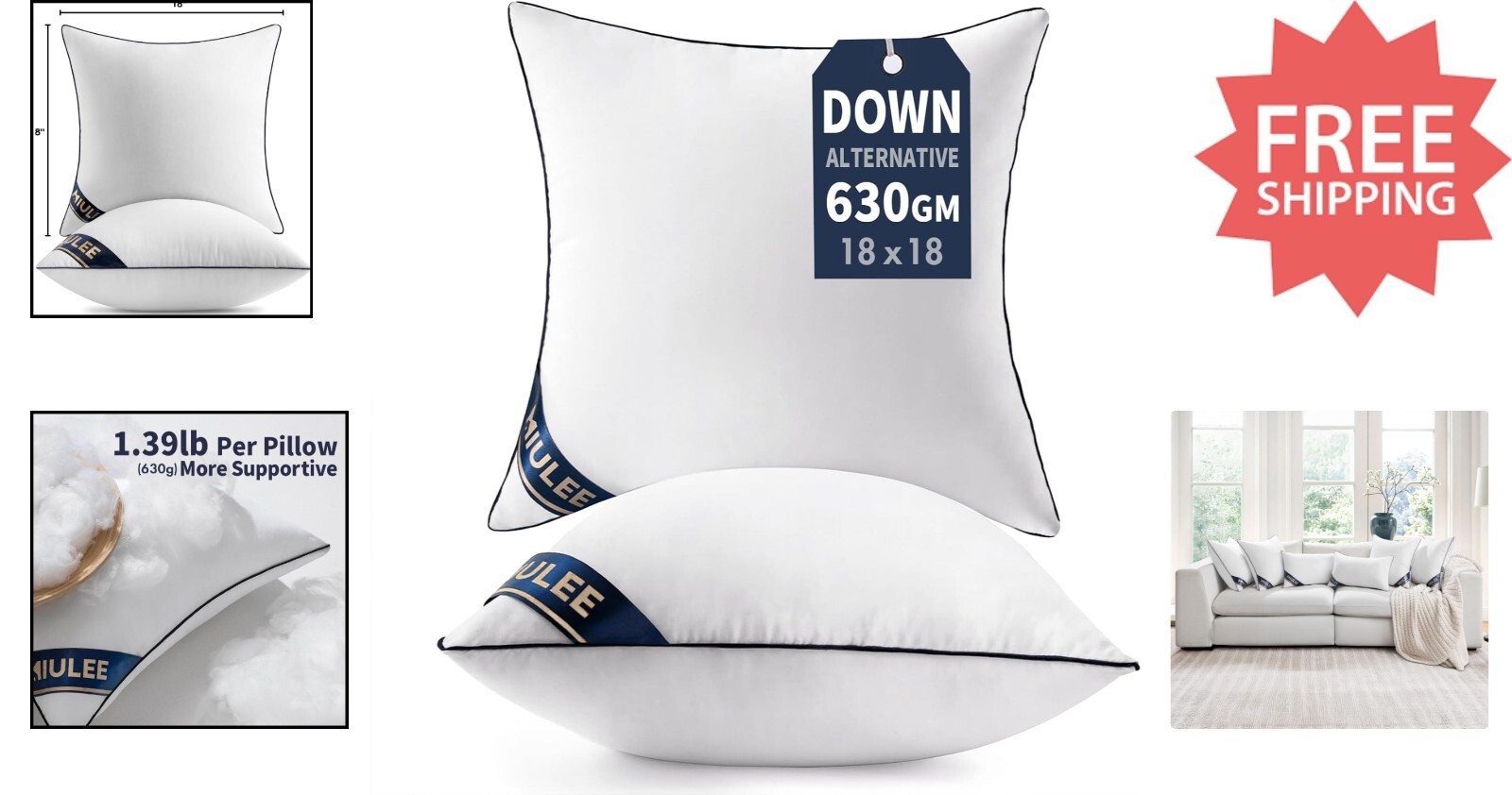 - Elegant 18x18 Pillow Inserts Set of 2 - Plush Down Alternative for Comfort