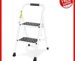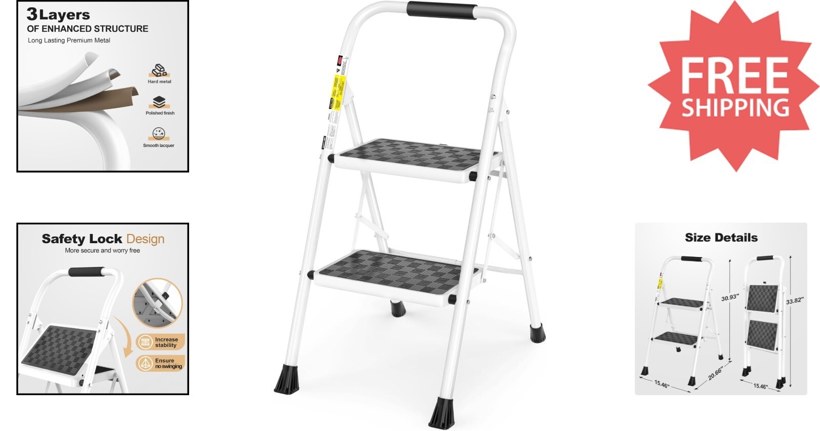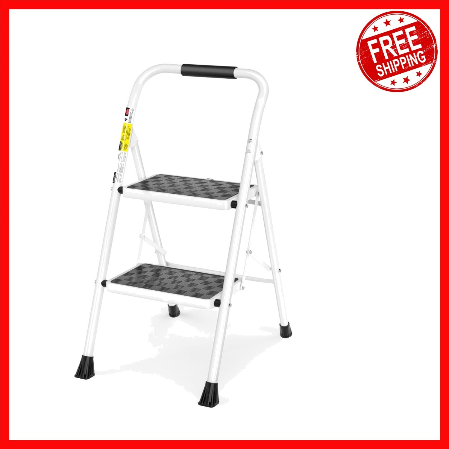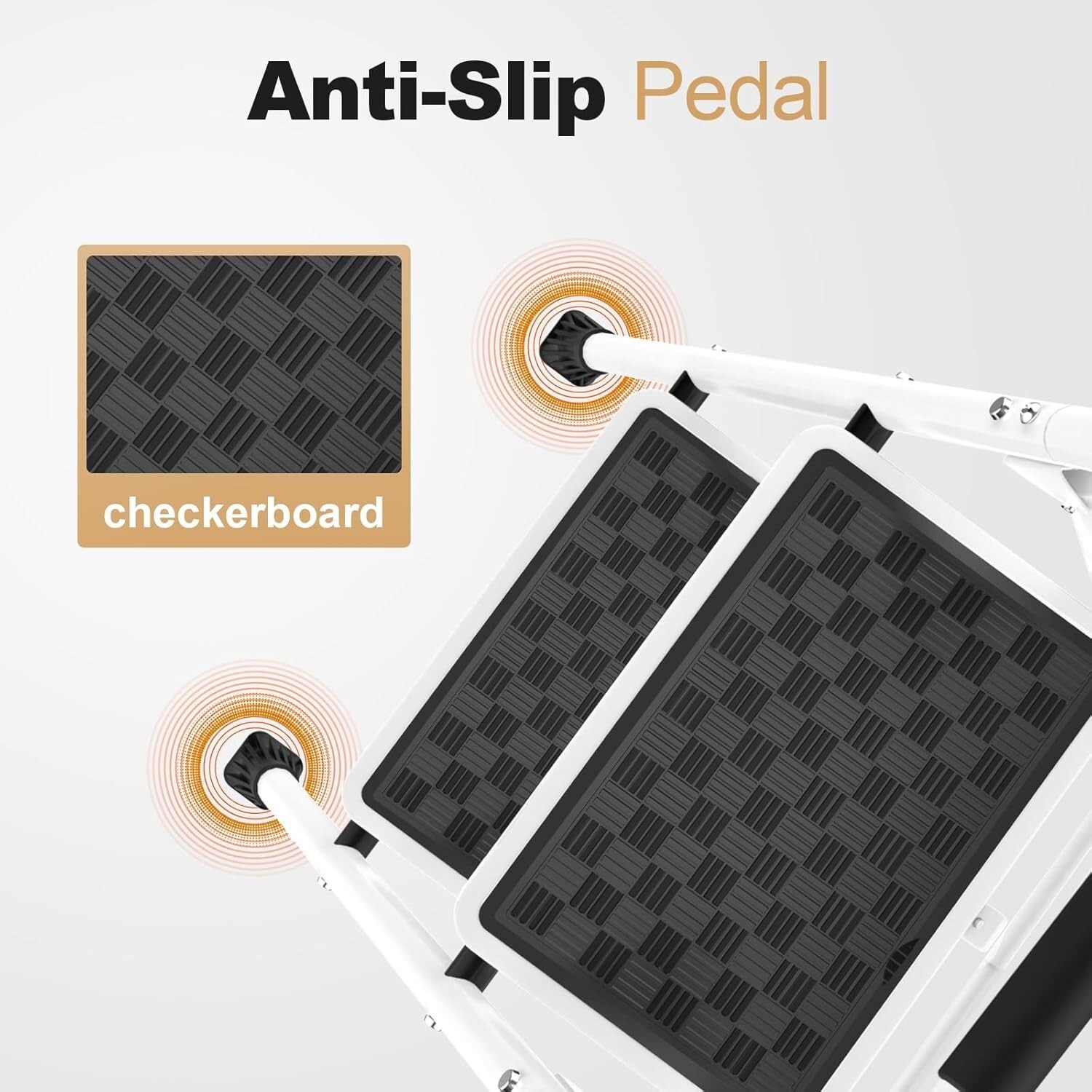 - Elegant 2-Step Folding Ladder with Cushioned Handle & Anti-Slip Pedals