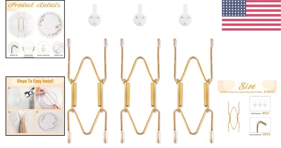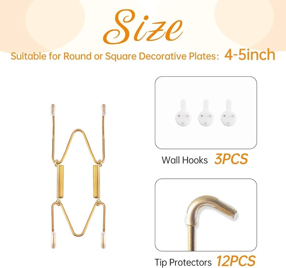 - Elegant 3 Pack Invisible Plate Hangers for 4-5 Inch Art Plates - Gold Finish