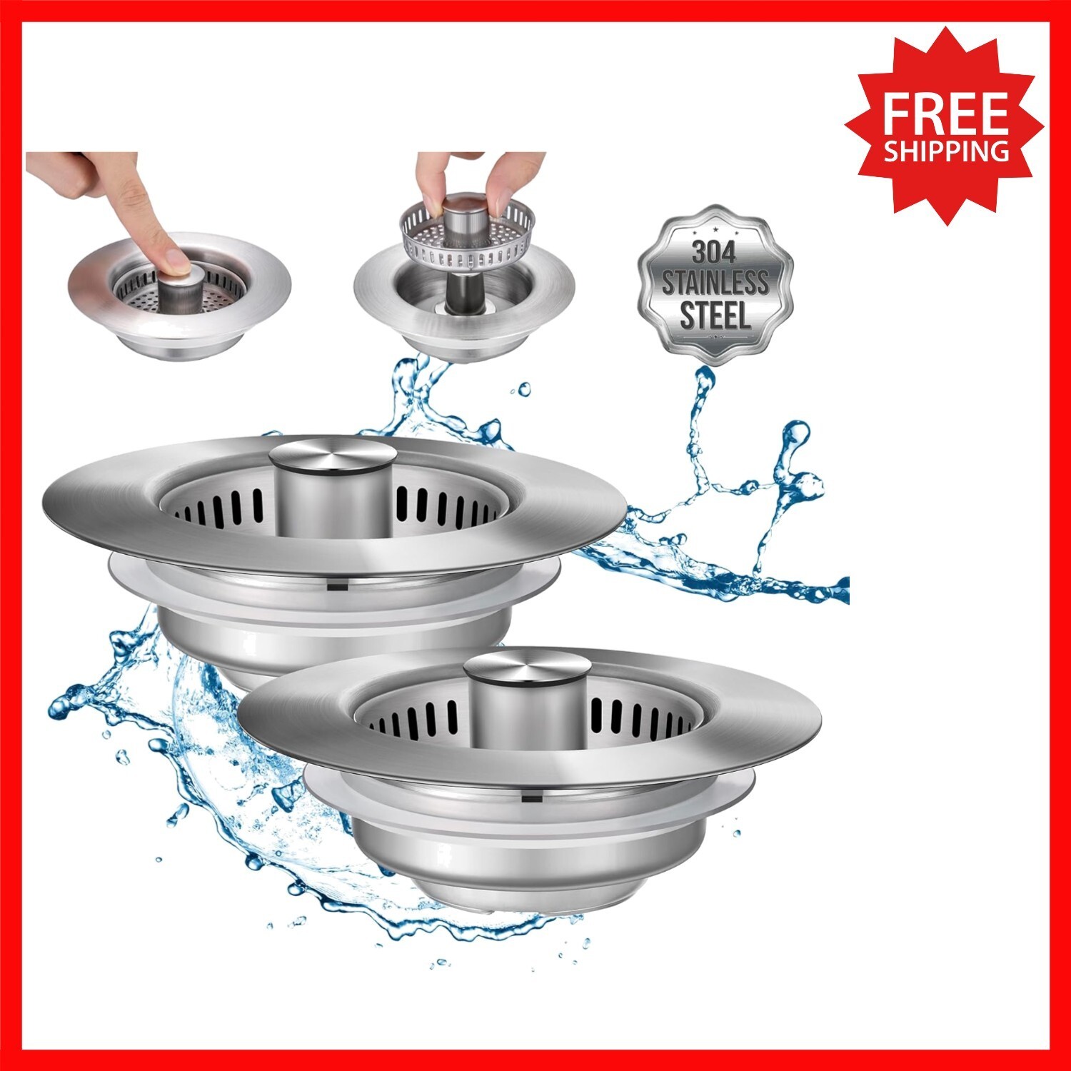 - Elegant 3-in-1 Kitchen Sink Strainer: Anti-Clogging & Odor-Filtering - 2 Pack