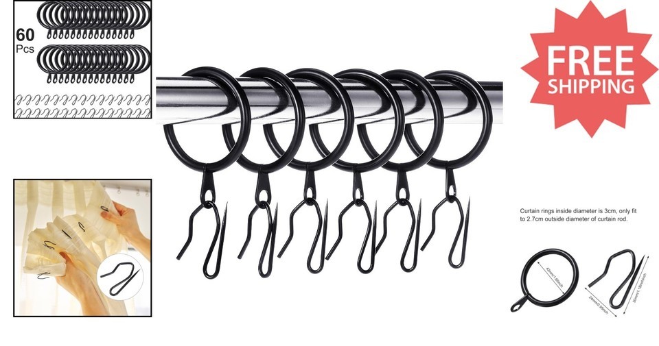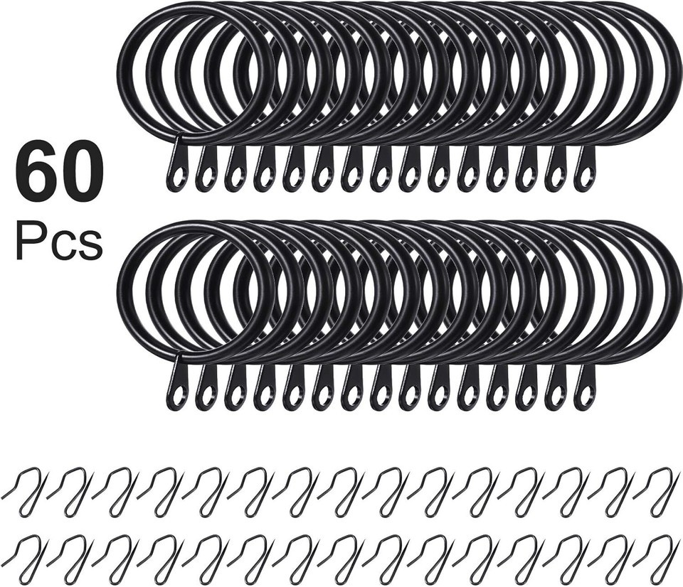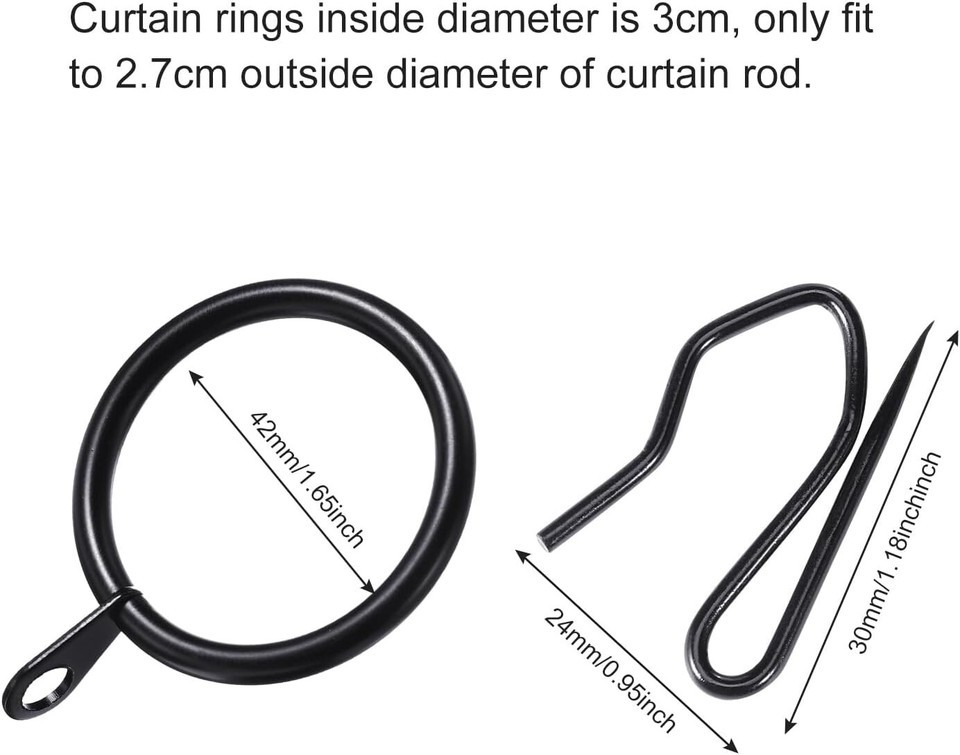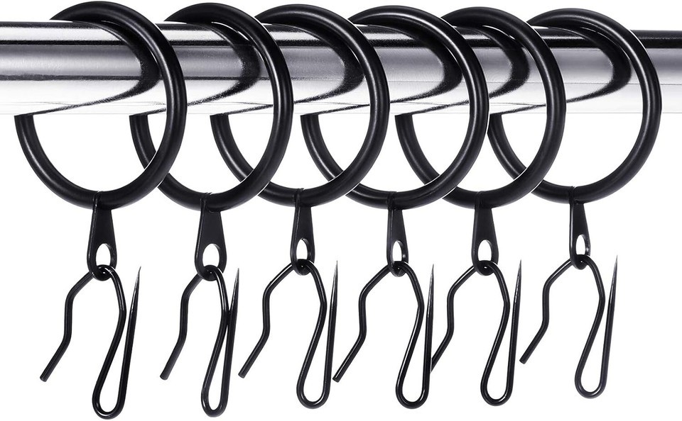 - Elegant 30 Black Metal Curtain Rings & Hooks Set - Strong & Easy to Install 42mm