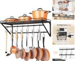Elegant 31 Inch Wall-Mounted Pot Rack with 14 Hooks - Space-Saving Kitchen Shelf