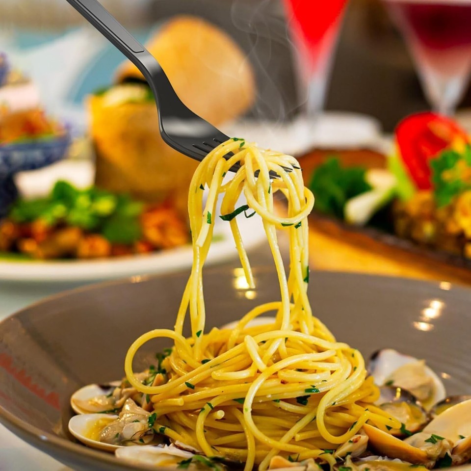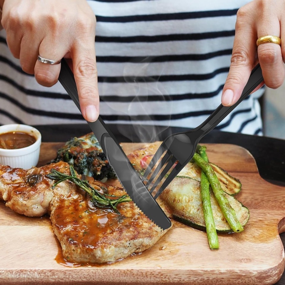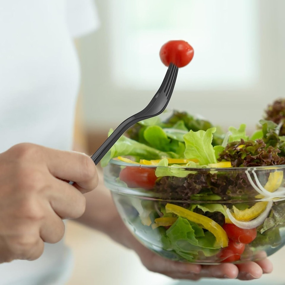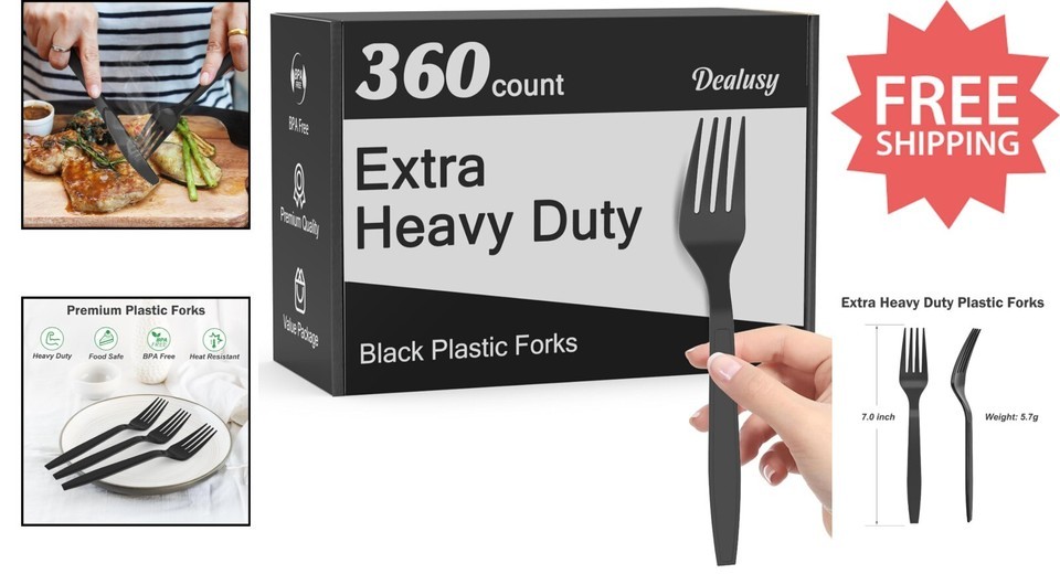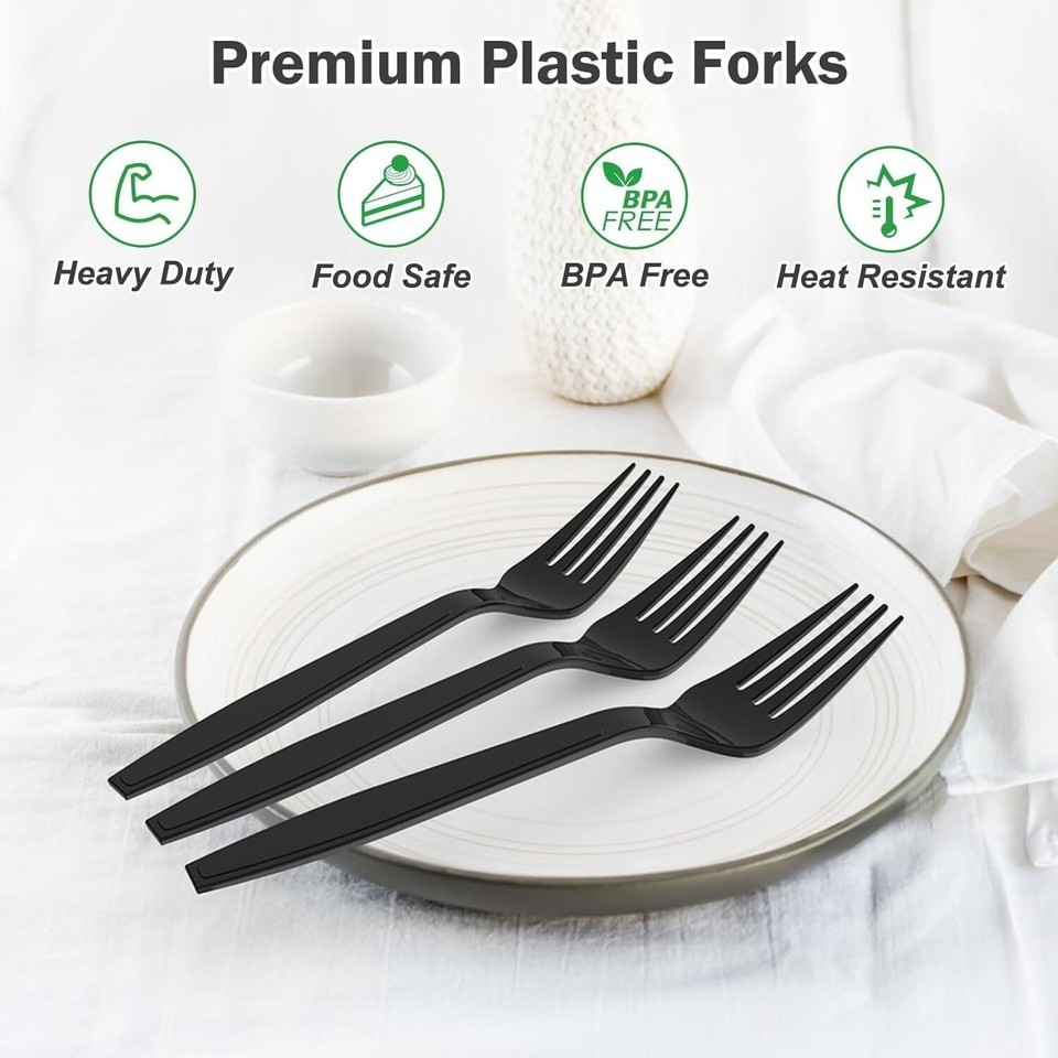 - Elegant 360 Black Plastic Forks - Extra Heavy Duty, Heat Resistant & Disposable