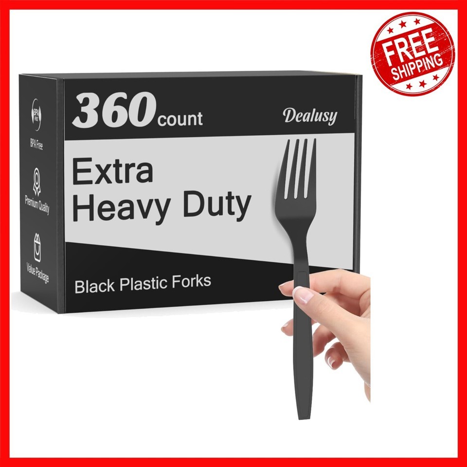 Experience reliability and quality with the Dealusy 360 Count Extra Heavy Duty Black Plastic Forks. Crafted from food-grade, BPA-free polystyrene, these forks are safe for your health and perfect for any occasion. With a sturdy, thickened edge design, each fork weighs 5.7g, ensuring they won't bend easily, even with hot or cold dishes. Ideal for everyday use, parties, weddings, or large events, the bulk pack offers excellent value and versatility. Though designed for disposable convenience, they can also be washed and reused for multiple occasions.