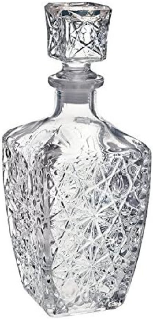 Versatility: Appreciate the versatility of this whiskey bottle's design. Its crystal cut pattern beautifully complements any decor, whether your home exudes modern minimalism or a more traditional aesthetic.