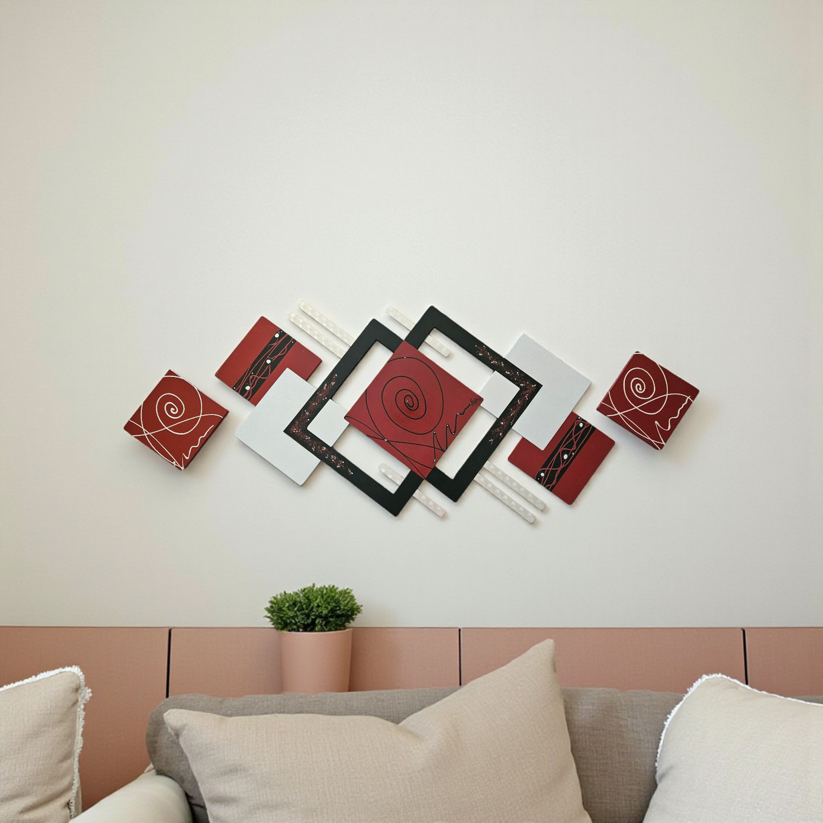 Stylish Elegant, Rich Burgundy and Silver Wood with Metal accents Wall hanging,