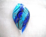 STUNNING Solid GLASS pendant with COBALT BLUE BABY BLUE SOME WHITE WITH GLITTERY BRONZE BLACK SWIRLS SLANT STRIPE DESIGN.