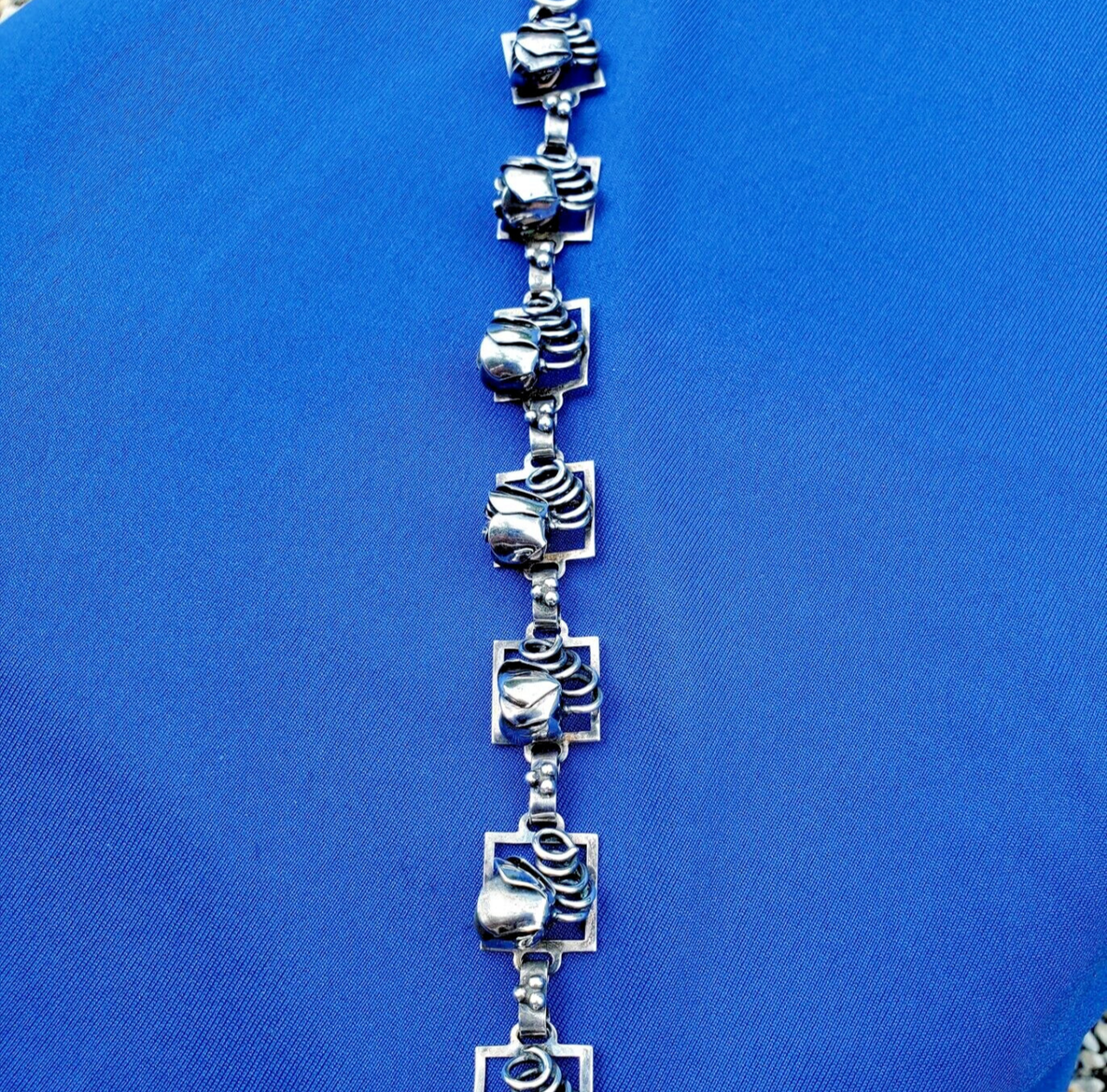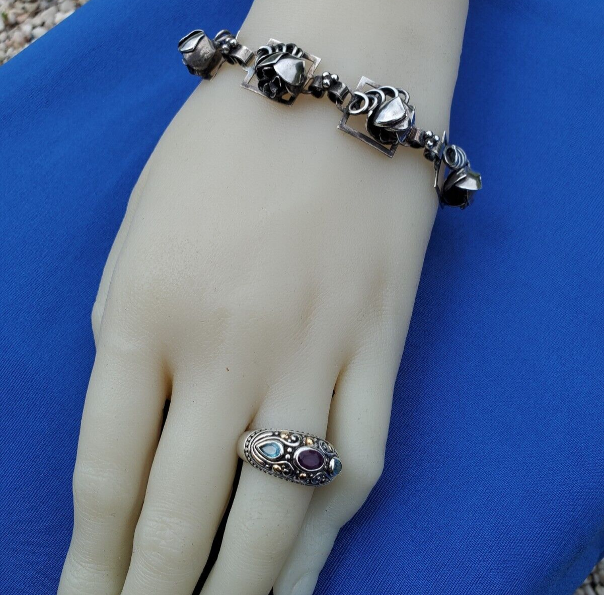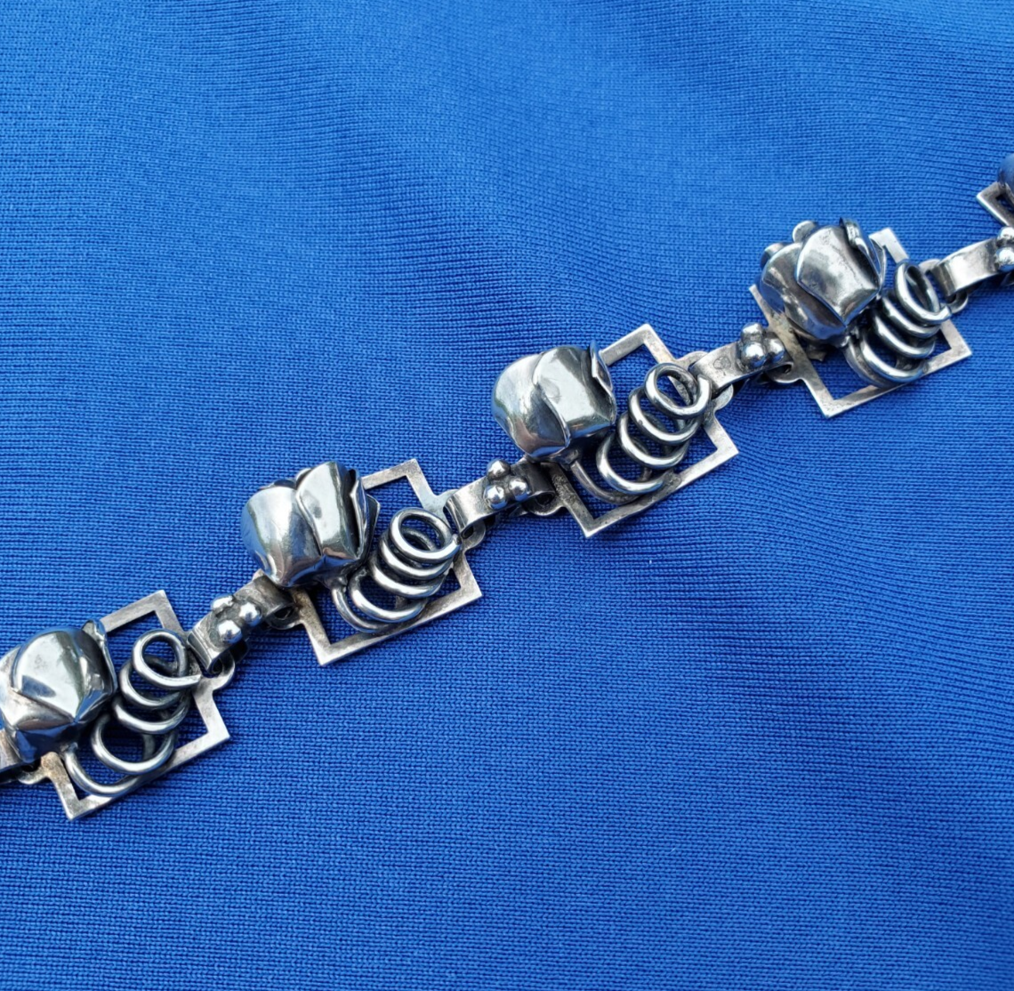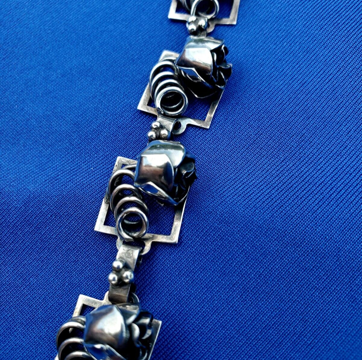 - Elegant Design Art Deco Sterling Silver Bracelet Unique Vintage Rose Nature Gift
