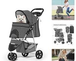 - Elegant Foldable Pet Dog and Cat Stroller with Storage Basket - Black Polka Dots