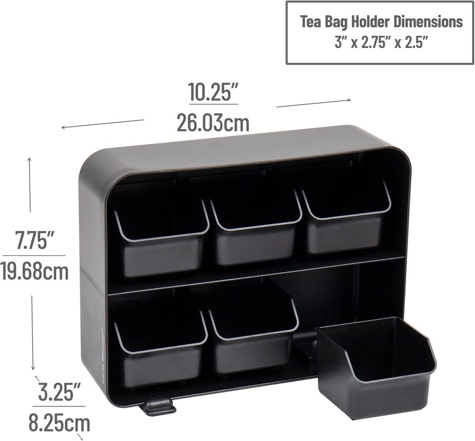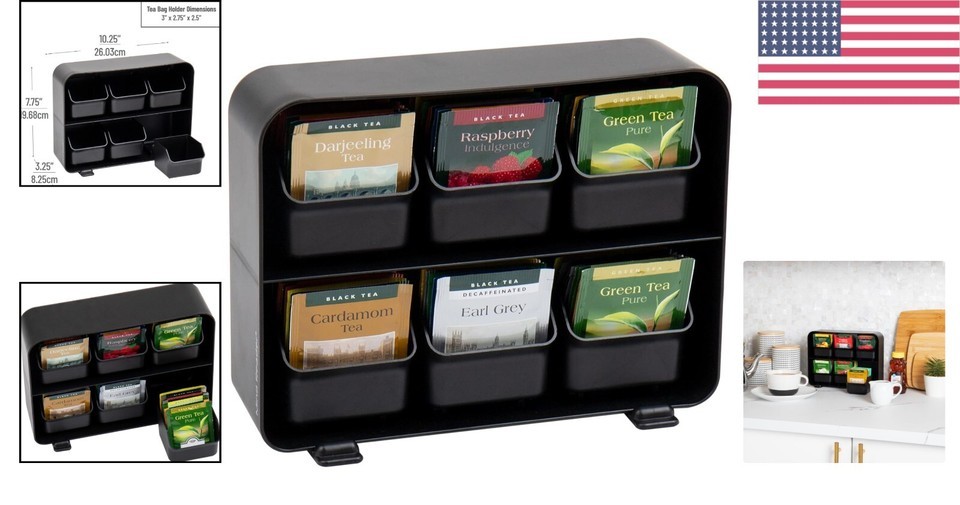 Organize by type: With six distinct drawers, easily separate and categorize tea bags by flavor, brand, or caffeine content.