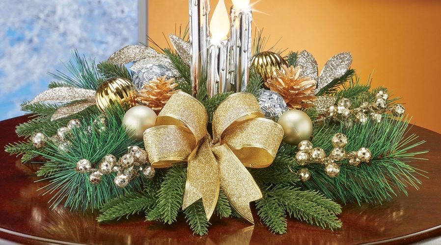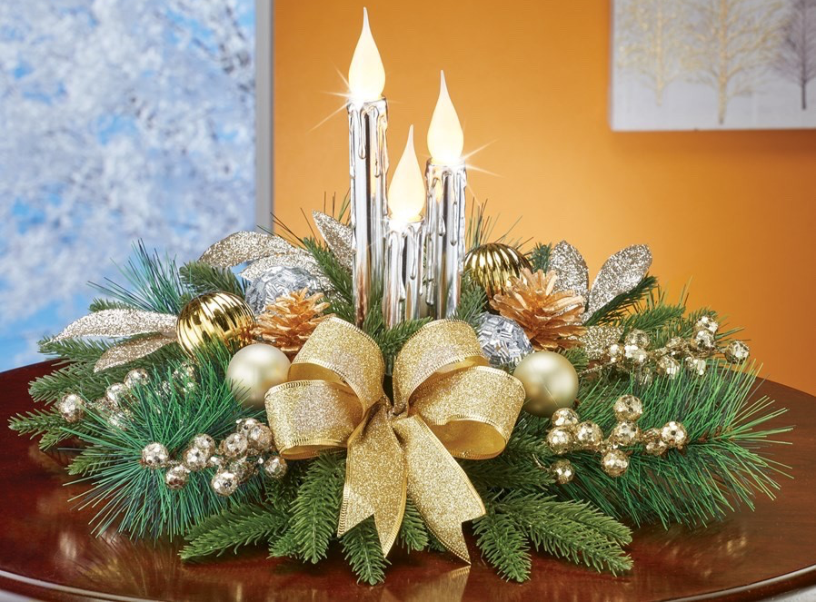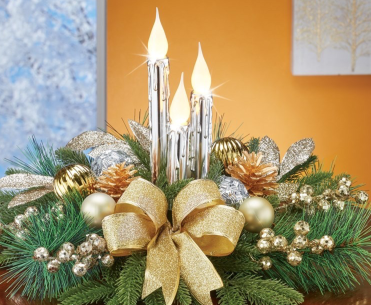 - Elegant Lighted LED Candle Centerpiece Christmas Silver Gold Floral Table Decor