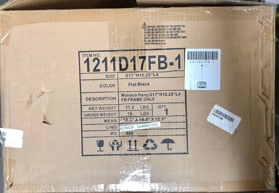 - Elegant Lighting Monaco 4 Light 17" Flat Black Pendant Ceiling Light, FRAME ONLY