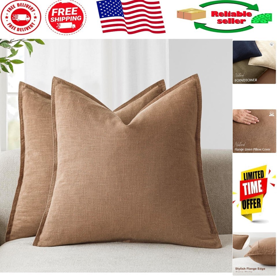 - Elegant Pack of 2 Decorative Linen Throw Pillow Cases 20x20 - Soft & Versatile