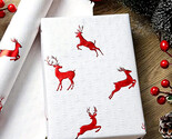 Christmas Wrapping Paper. Elegant Glossy Red Reindeer with white stamped contemporary Christmas trees imprinted against white nongloss(low sheen) background. Short roll, 17" tall x 32.8" long. New, direct dropship from supplier.