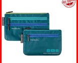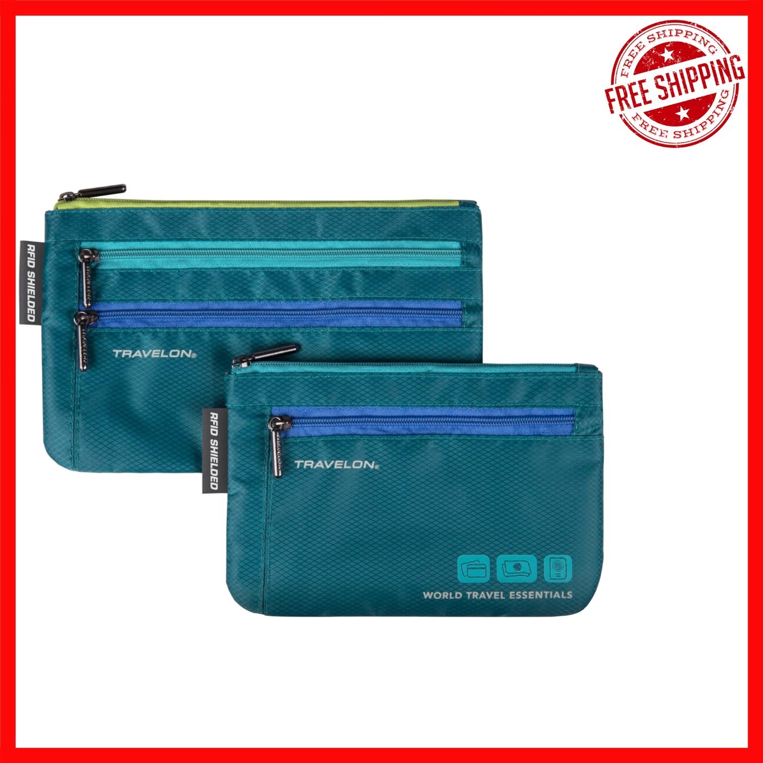 Keep your essentials secure and organized with this sleek set of two RFID-shielded pouches. Crafted from water-resistant, diamond-pattern ripstop polyester, these pouches feature multiple pockets with colorful zippers for easy access to currencies, passports, cards, train tickets, and receipts. Despite their slim profile, they offer ample space to manage your travel needs efficiently. Available in small (7" x 4.5") and large (7.75" x 5") sizes, weighing just 0.13 lbs., they are perfect for on-the-go organization and security.