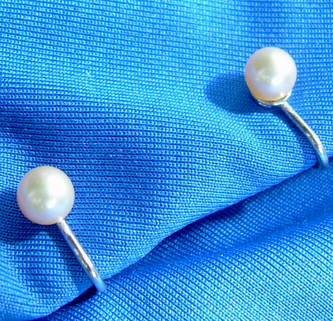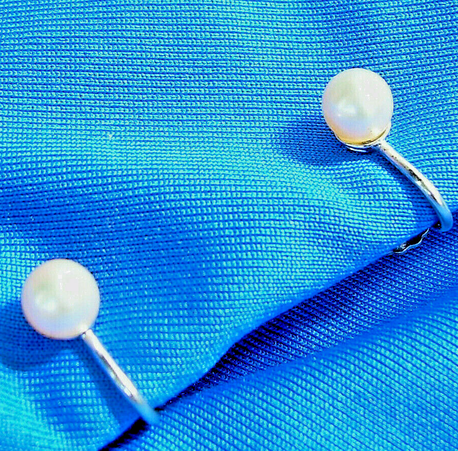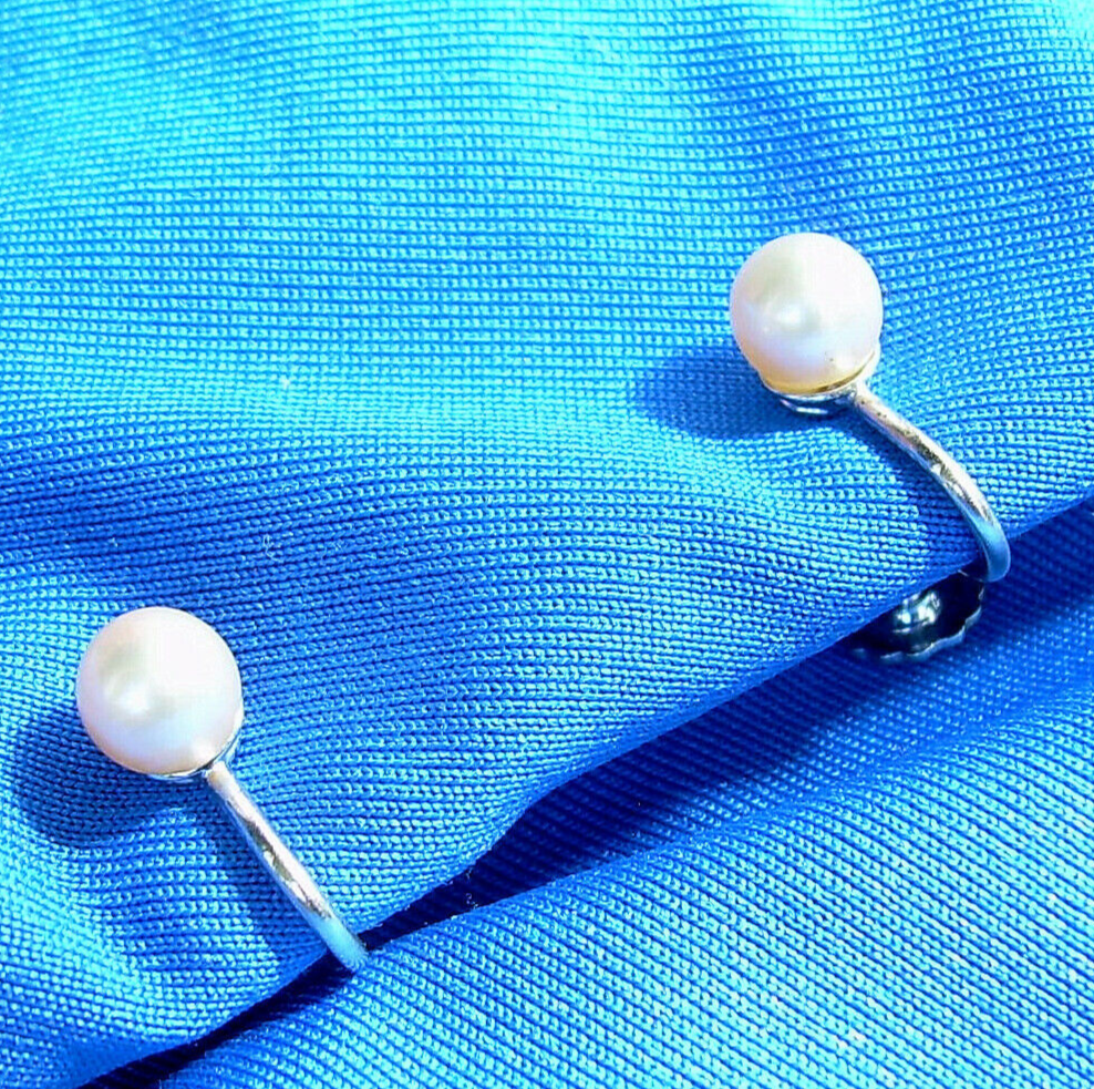 Elegant Vintage 6 millimeters PEARL Earrings Delicate 14k White Gold Deco Studs