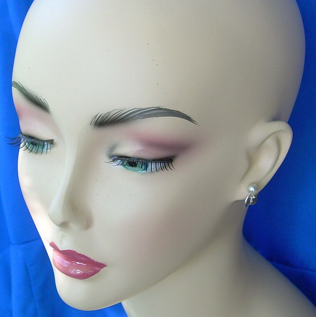 - Elegant Vintage 6 millimeters PEARL Earrings Delicate 14k White Gold Deco Studs
