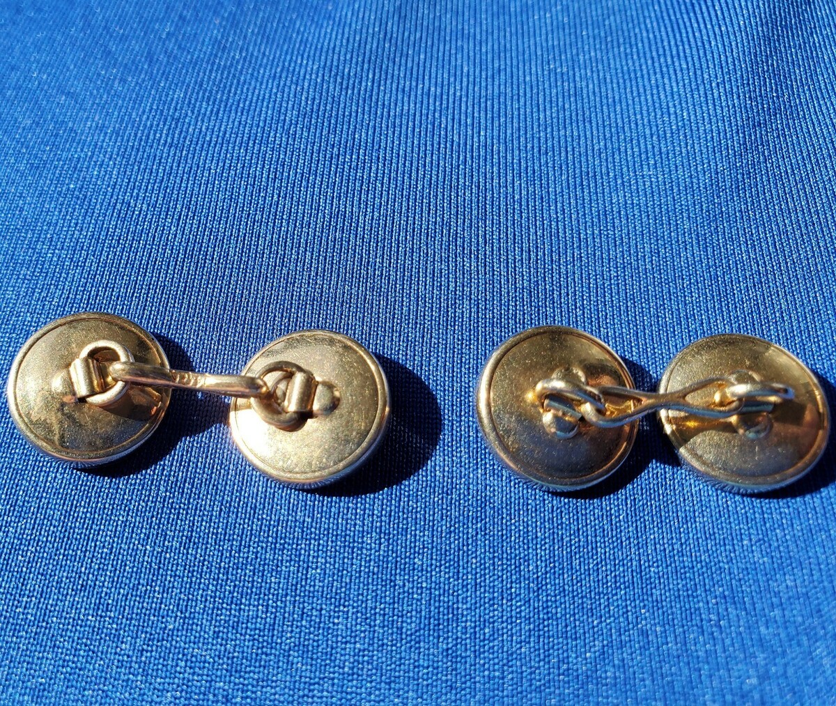 - ELEGANT VINTAGE ART DECO 14K GOLD PLATINUM PEARL ONYX CUFF LINKS BUTTONS