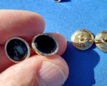 - Elegant Vintage Deco Onyx Platinum Rim Cuff Links 14k Gold Gatsby Era Buttons