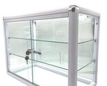 - Elegant White Aluminum Display Table Top Tempered Glass Showcase with LED Lights