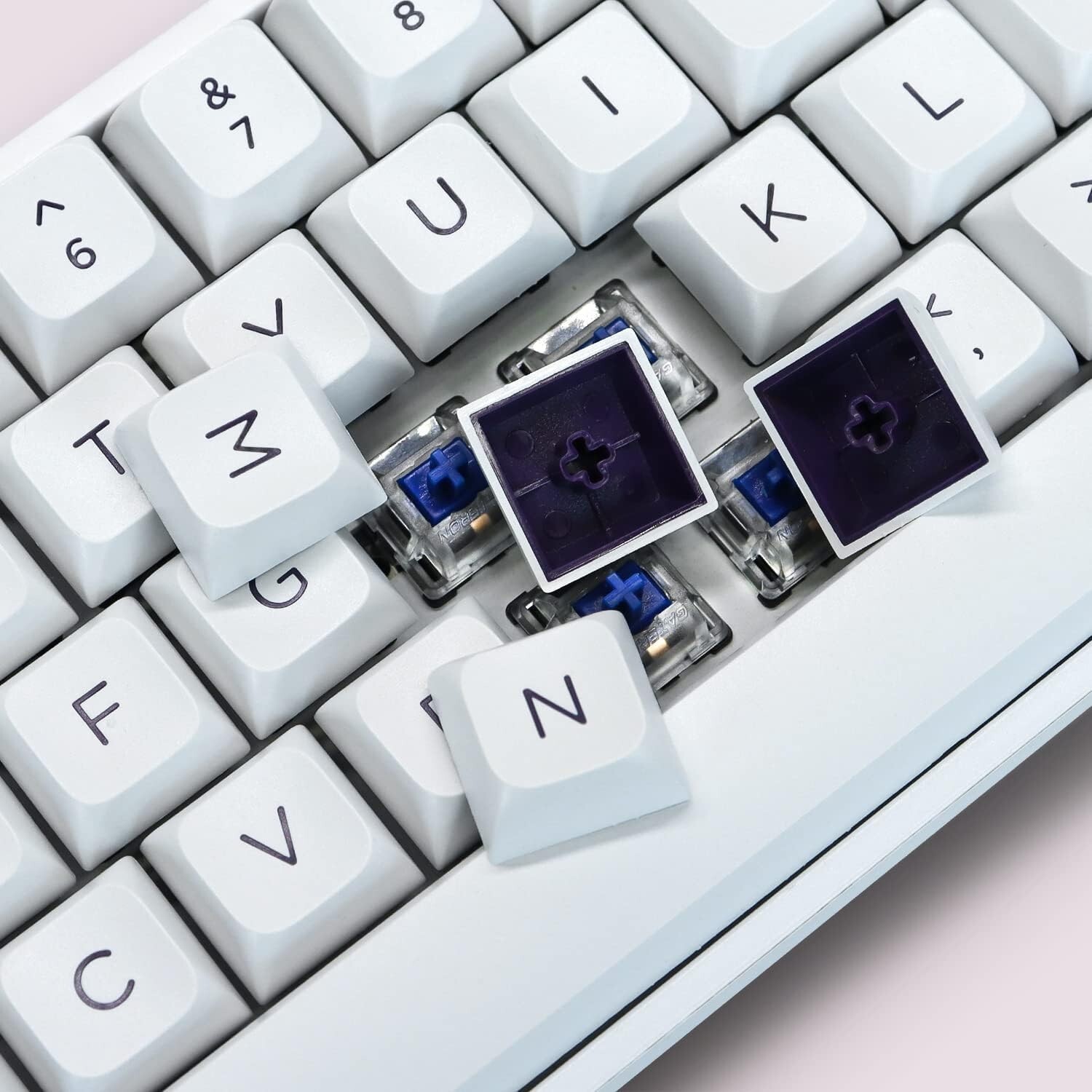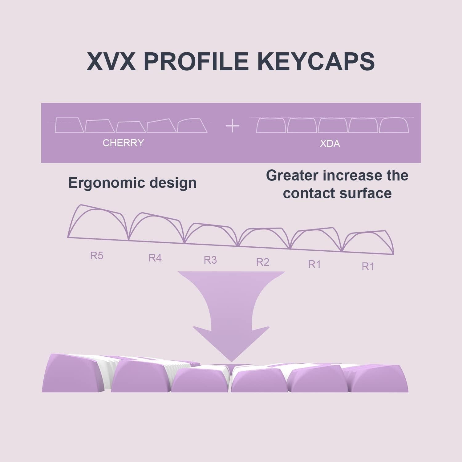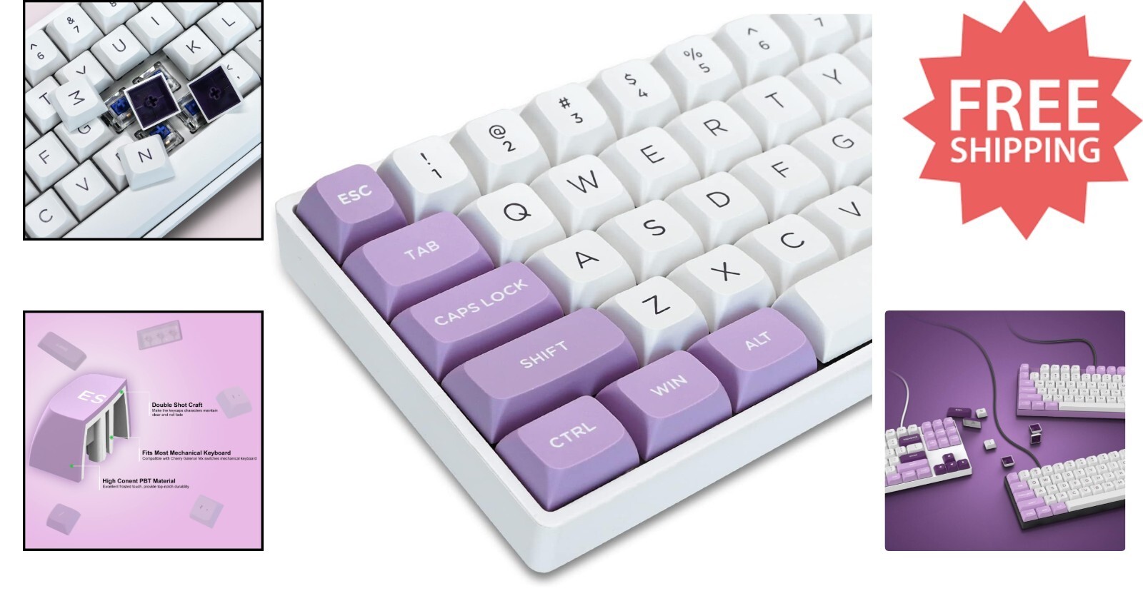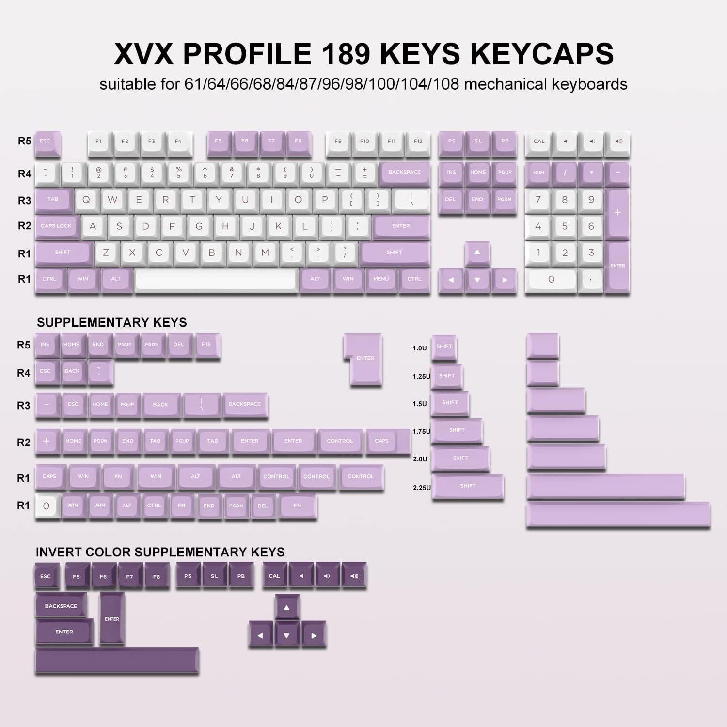 - Elegant White/Purple PBT Keycaps Set - 189 Keys for Mechanical Keyboards