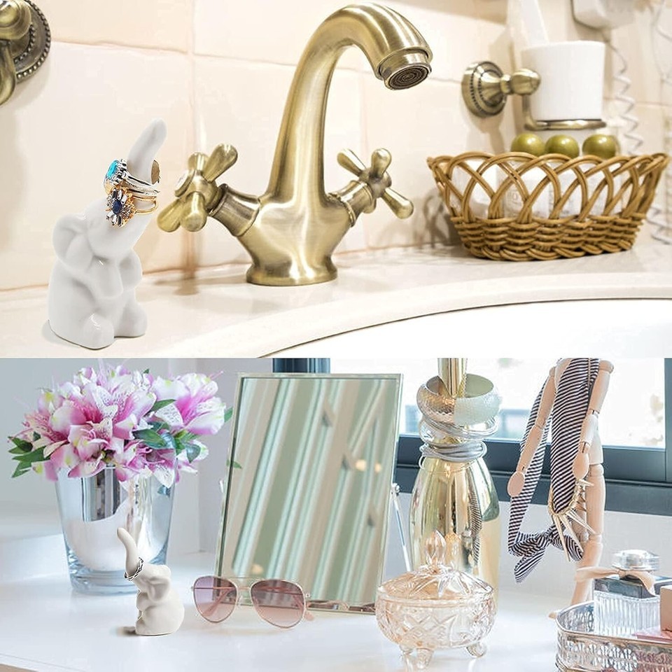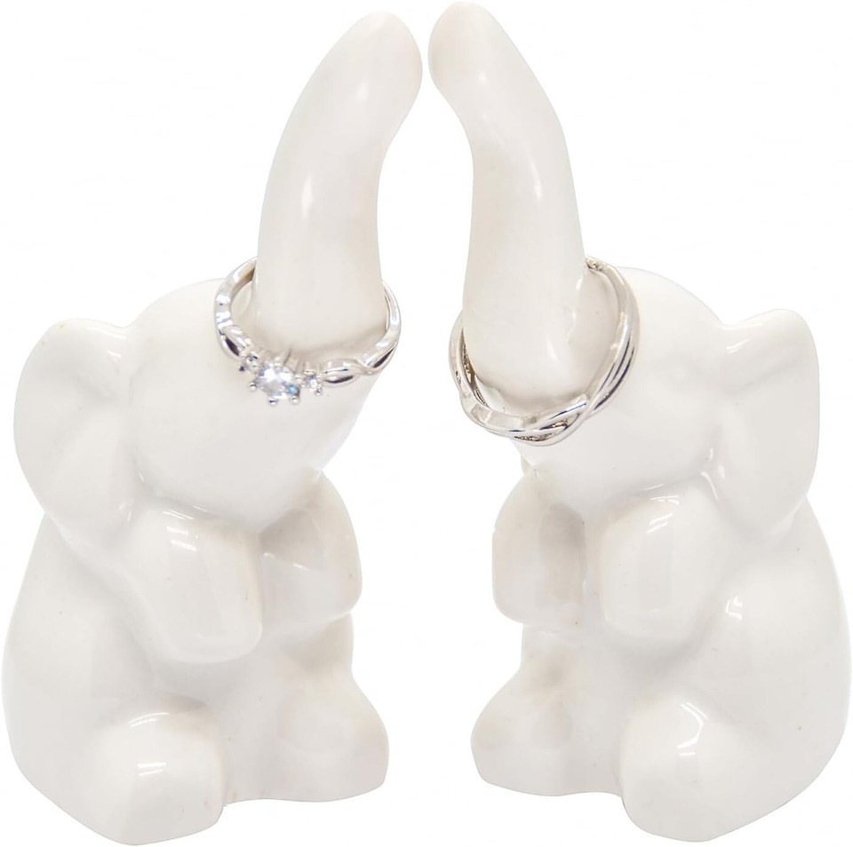 - Elephant Ring Holder 2 Pack, White, Ceramic, Jewelry 1.58"D x 1.37"W x 3.74"H