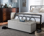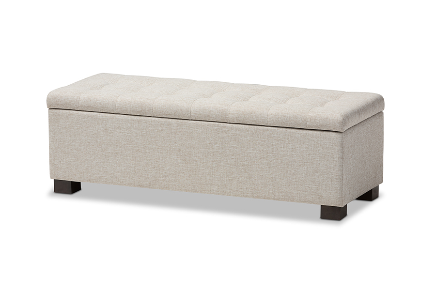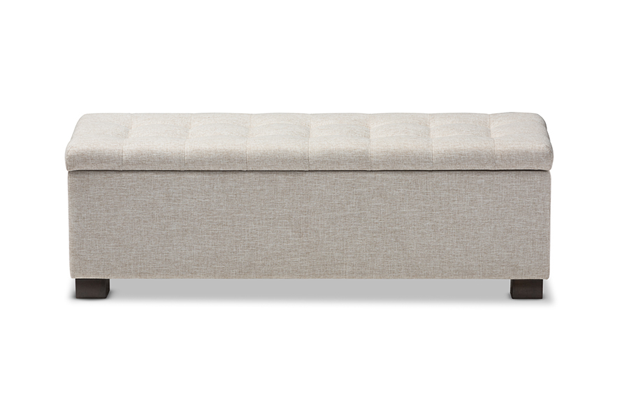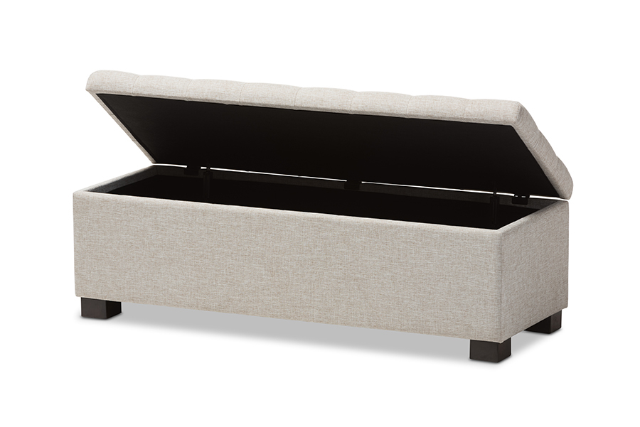 - Eleri Beige Fabric Upholstered Grid-Tufting Storage Ottoman Bench