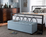 - Eleri Light Blue Fabric Upholstered Grid-Tufting Storage Ottoman Bench