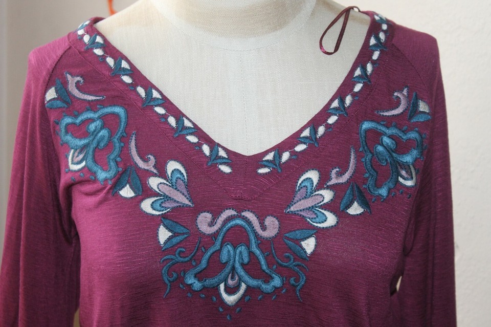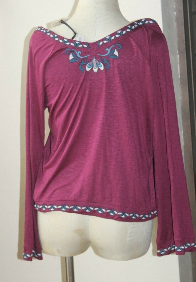 - Eliane Rose women's embroidered bell wide sleeve boho top sz M