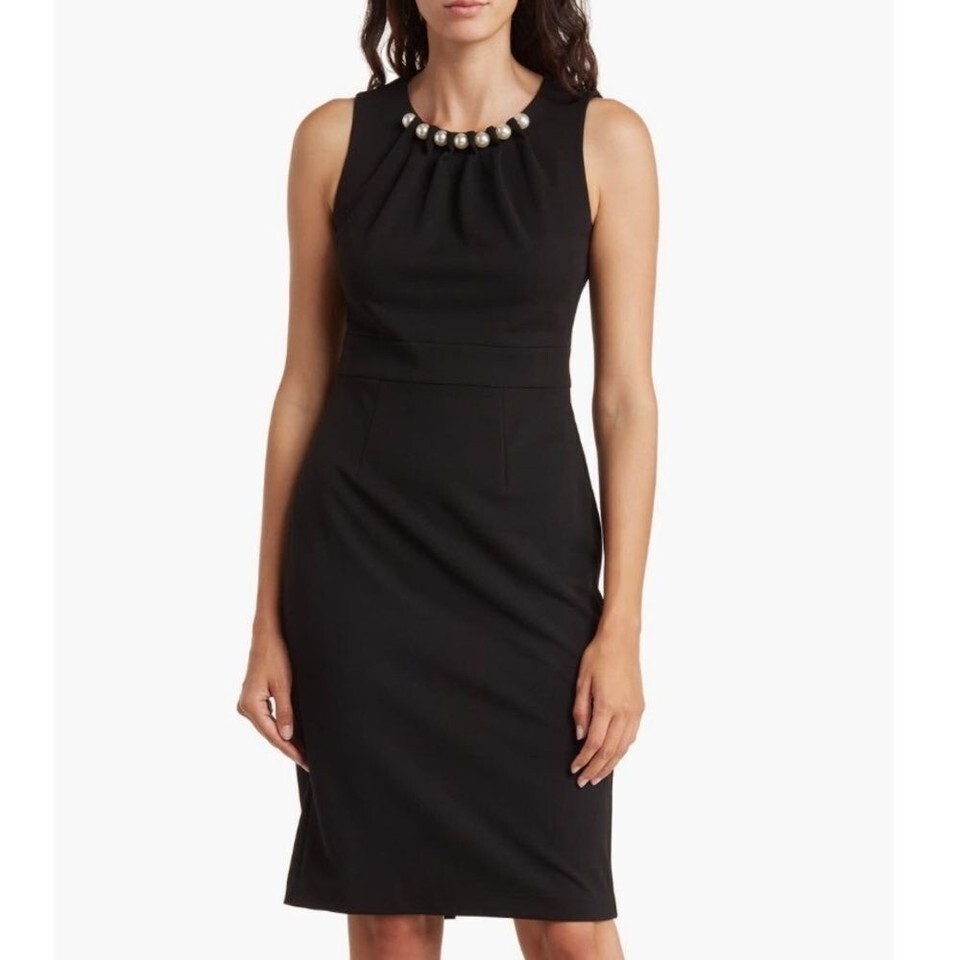 - Eliza J Faux Pearl Sleeveless Shift Dress Classic Little Black Dress Size 12 NWT
