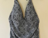 - Ellen Tracy Sz 14 Halter Strap Neck Tankini Top Swimsuit Stretch Black White