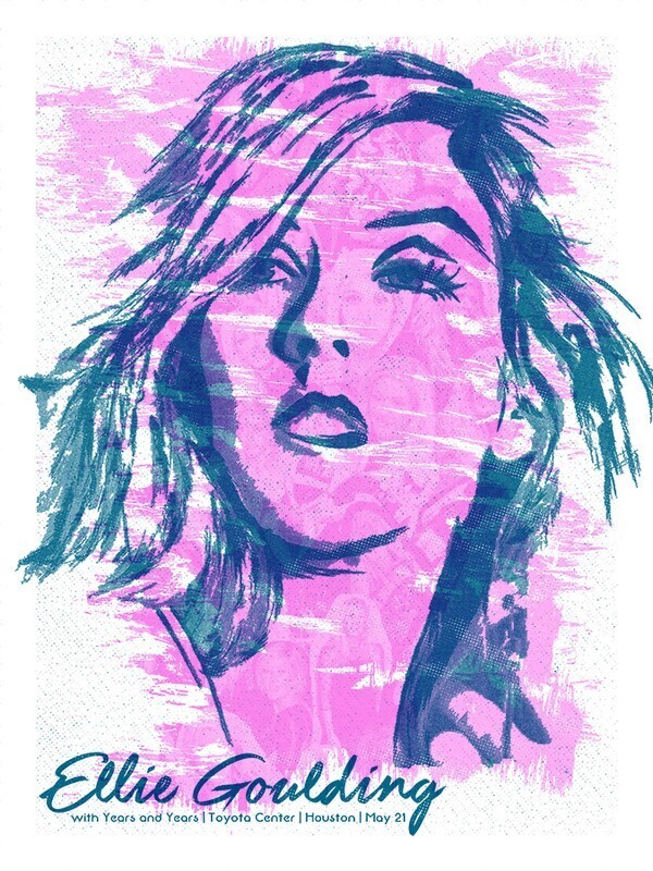 Ellie Goulding Affiche Silkscreen Signe numerote Houston TX 21 mai
