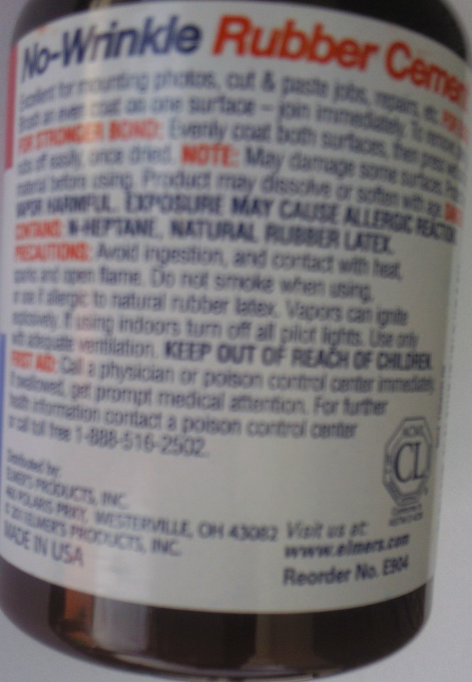 Elmer's No-Wrinkle Rubber Cement is a better solution for adhering photos and detailed cut and paste projects. Excess glue rubs off cleanly and shows no wrinkles as it dries. With an easy to control brush style applicator, Elmer's No-Wrinkle Rubber Cement is acid-free and photo-safe, providing excellent adhesion for treasured scrapbooks and other important projects. You can trust your best work to Elmer's! Through years of growth and innovation Elmer's has proven its longstanding commitment to quality and fulfillment of consumers' inherent need to imagine, build and learn.